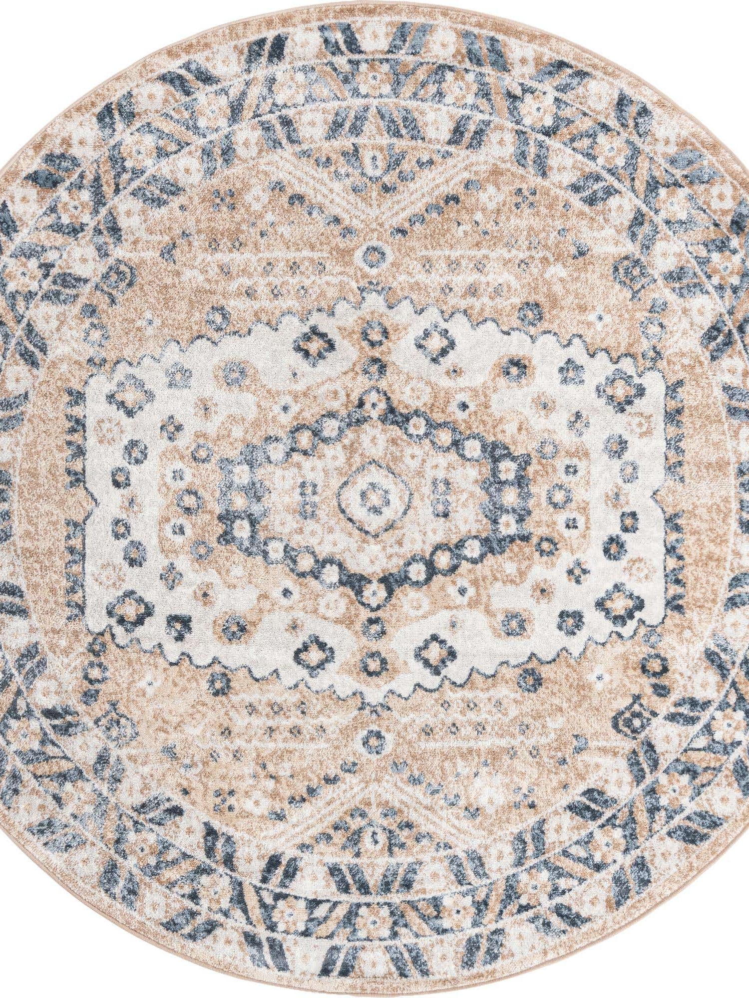Washable Blue 5' x 5' Timeless Round Area Rug Easy to Clean Stain Resistant & Durable