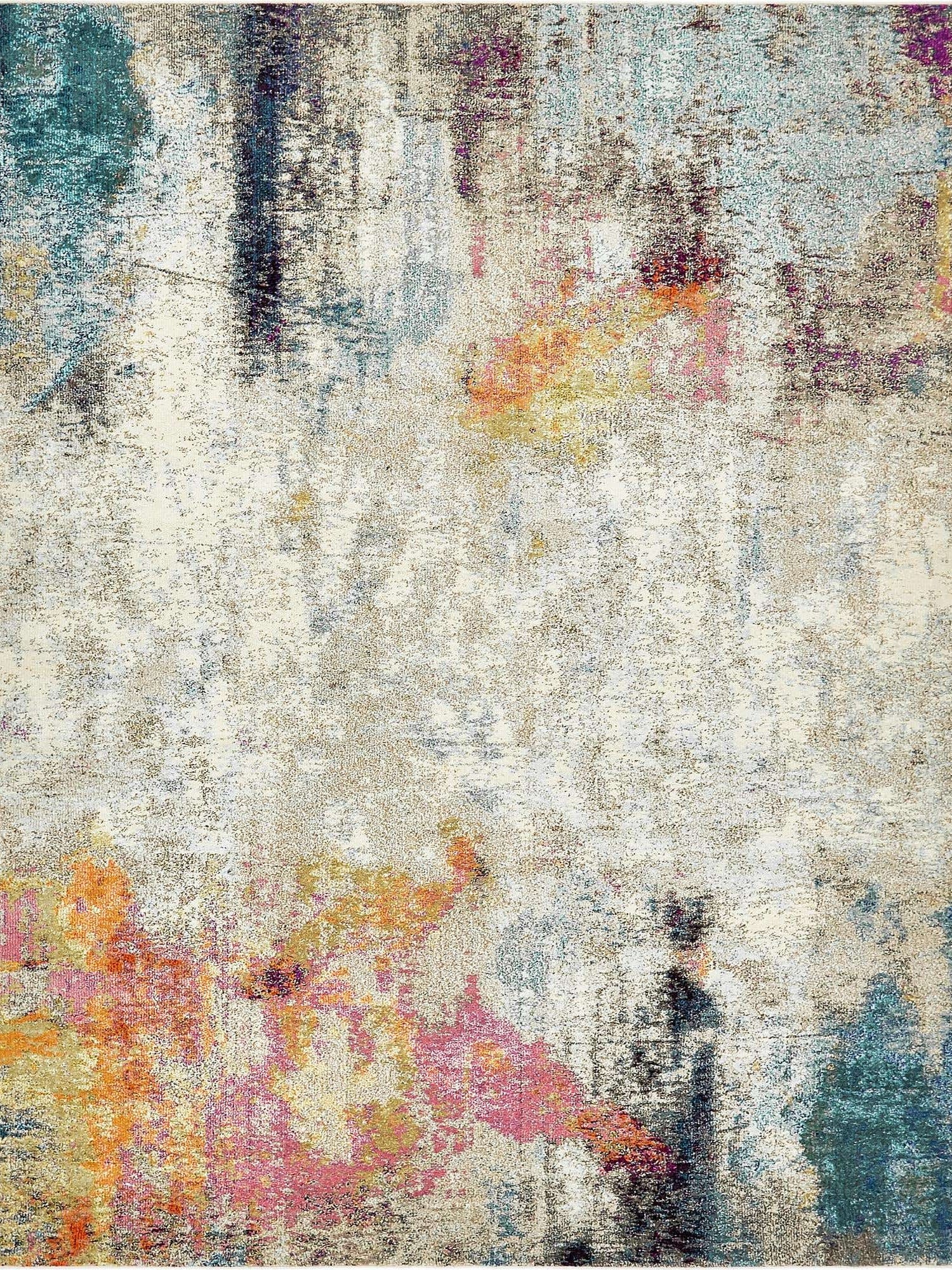Beige 8' x 10' Chromatic Rectangle Area Rug 100% Polypropylene With Cotton Backing Abstract Modern Colorful Carpet Mat for Home Decor & Interior Design