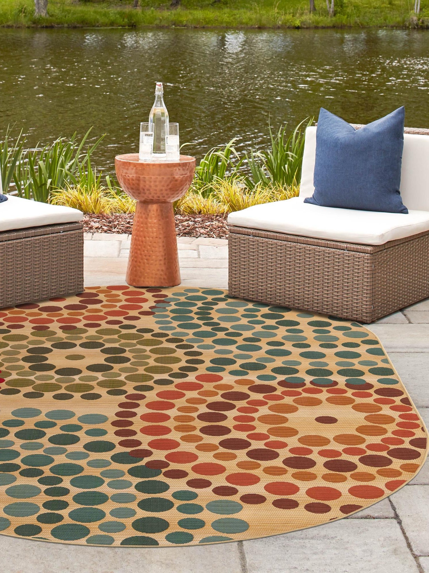 Beige 7' 10 x 10' Outdoor Modern Oval Area Rug Weather Resistant for Patio, Deck, Terrace, Balcony, Porch