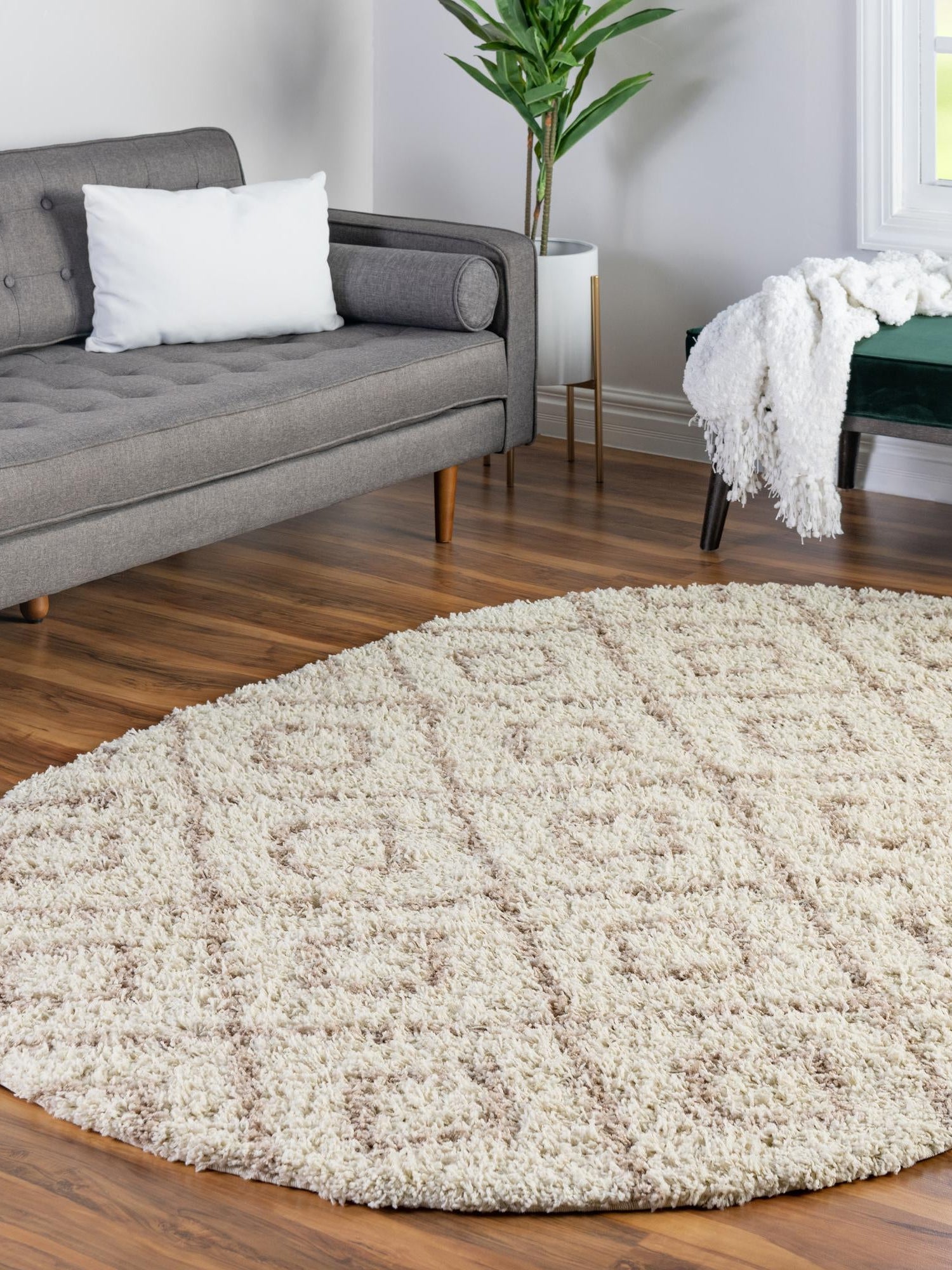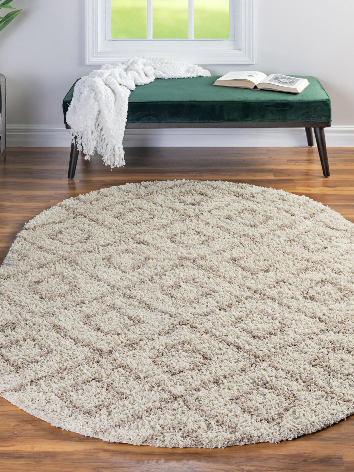Beige 7' 10 x 10' Trellis Shag Oval Area Rug Thick Soft Touch Fluffy & Plush Shaggy Pile