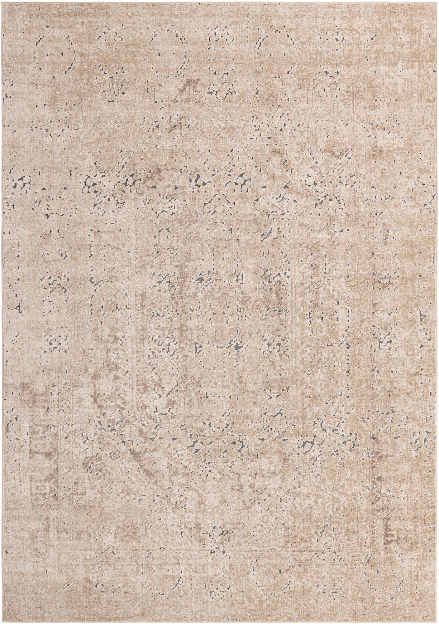 Beige 7' 10 x 11' Chateau Rectangle Area Rug 85% Polypropylene & 15% Chenille With Cotton Backing Traditional Vintage Distressed Carpet for Classical Interior Design Decorating