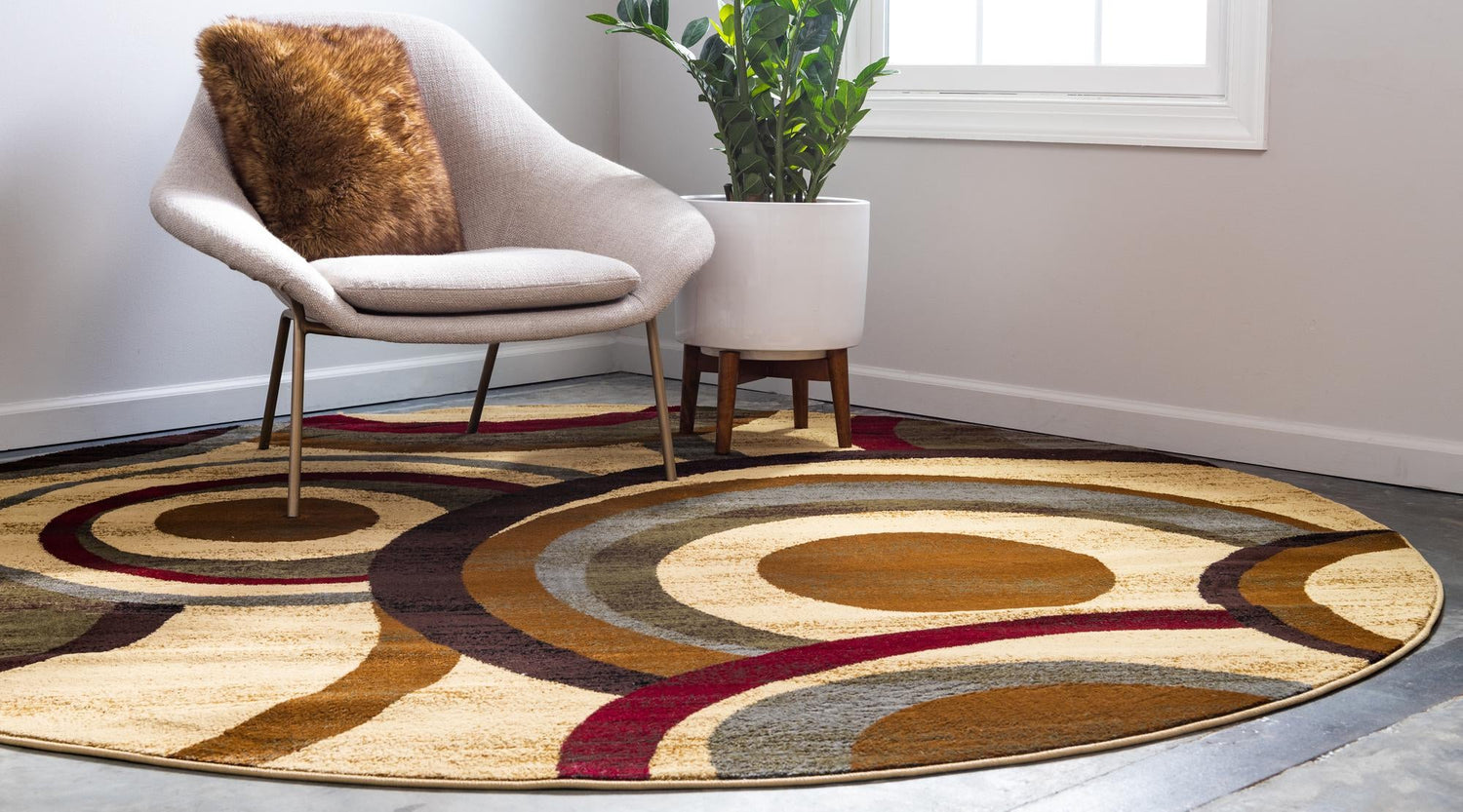 Beige 7' 10 x 7' 10 Barista Round Area Rug 100% Polypropylene Abstract Modern Geometric Carpet for Living Room Dining Office Dorm Room Decor