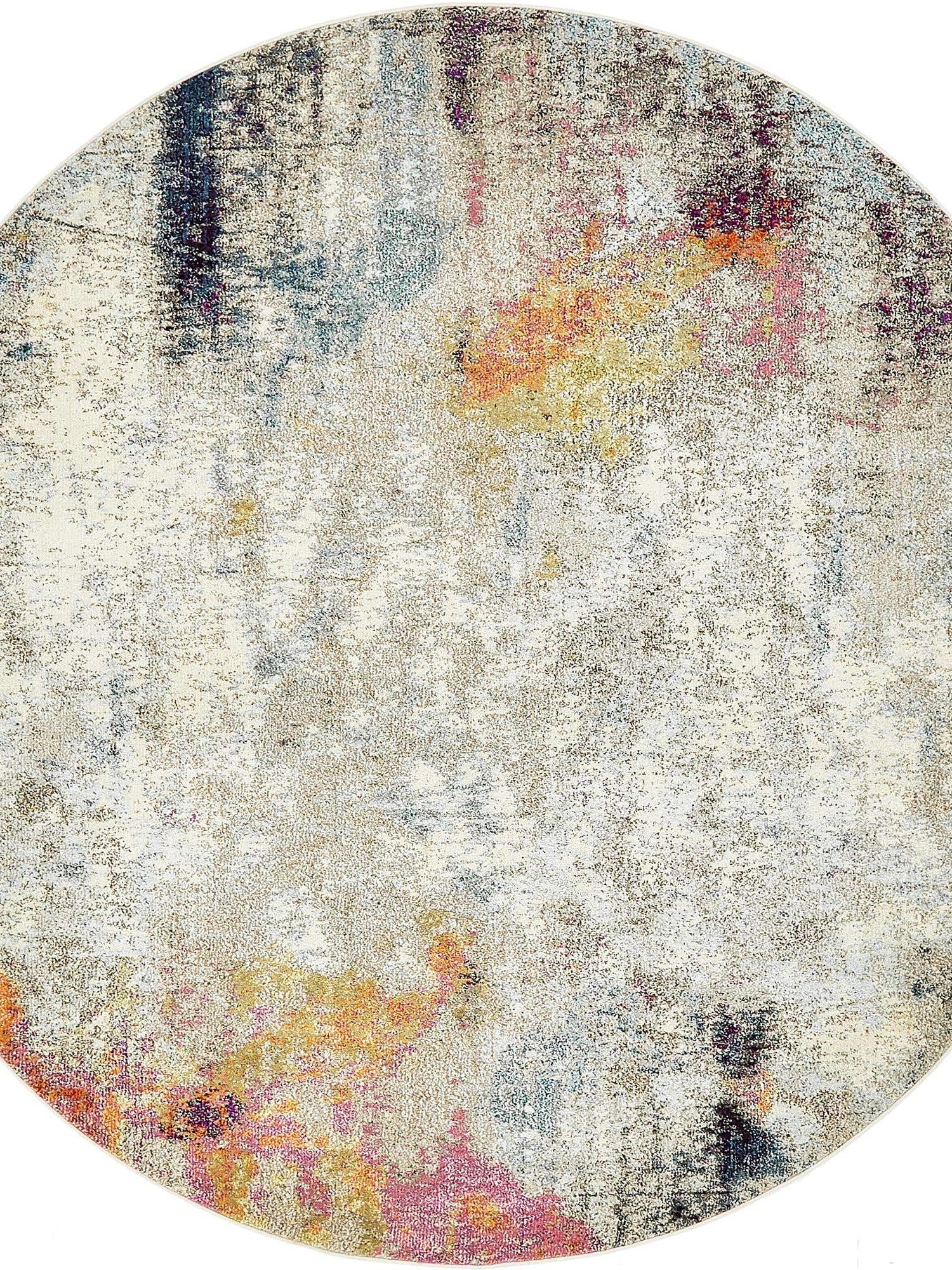 Beige 8' x 8' Chromatic Round Area Rug 100% Polypropylene With Cotton Backing Abstract Modern Colorful Carpet Mat for Home Decor & Interior Design