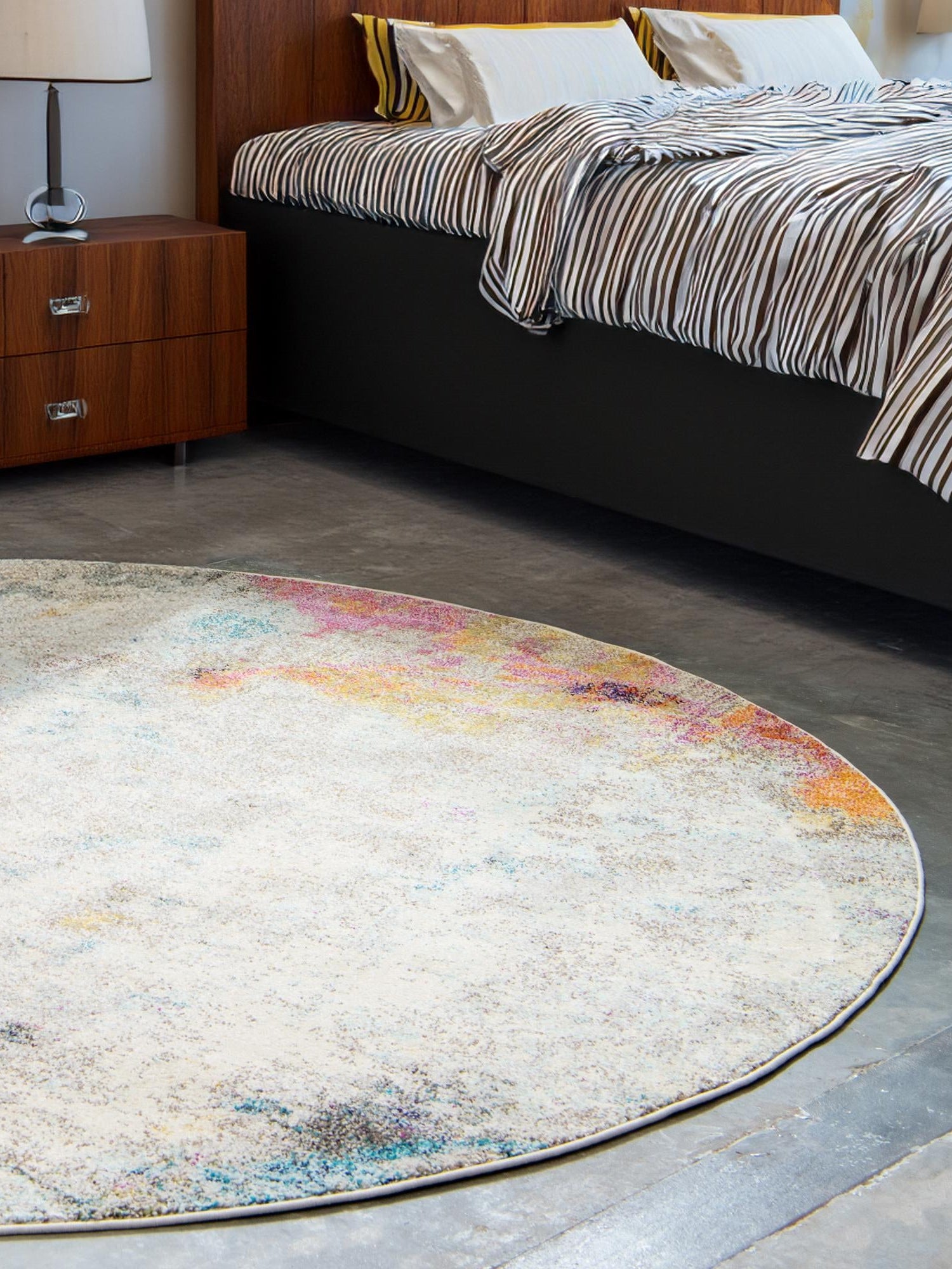 Beige 7' 11 x 7' 11 Chromatic Round Area Rug 100% Polypropylene With Cotton Backing Abstract Modern Colorful Carpet Mat for Home Decor & Interior Design