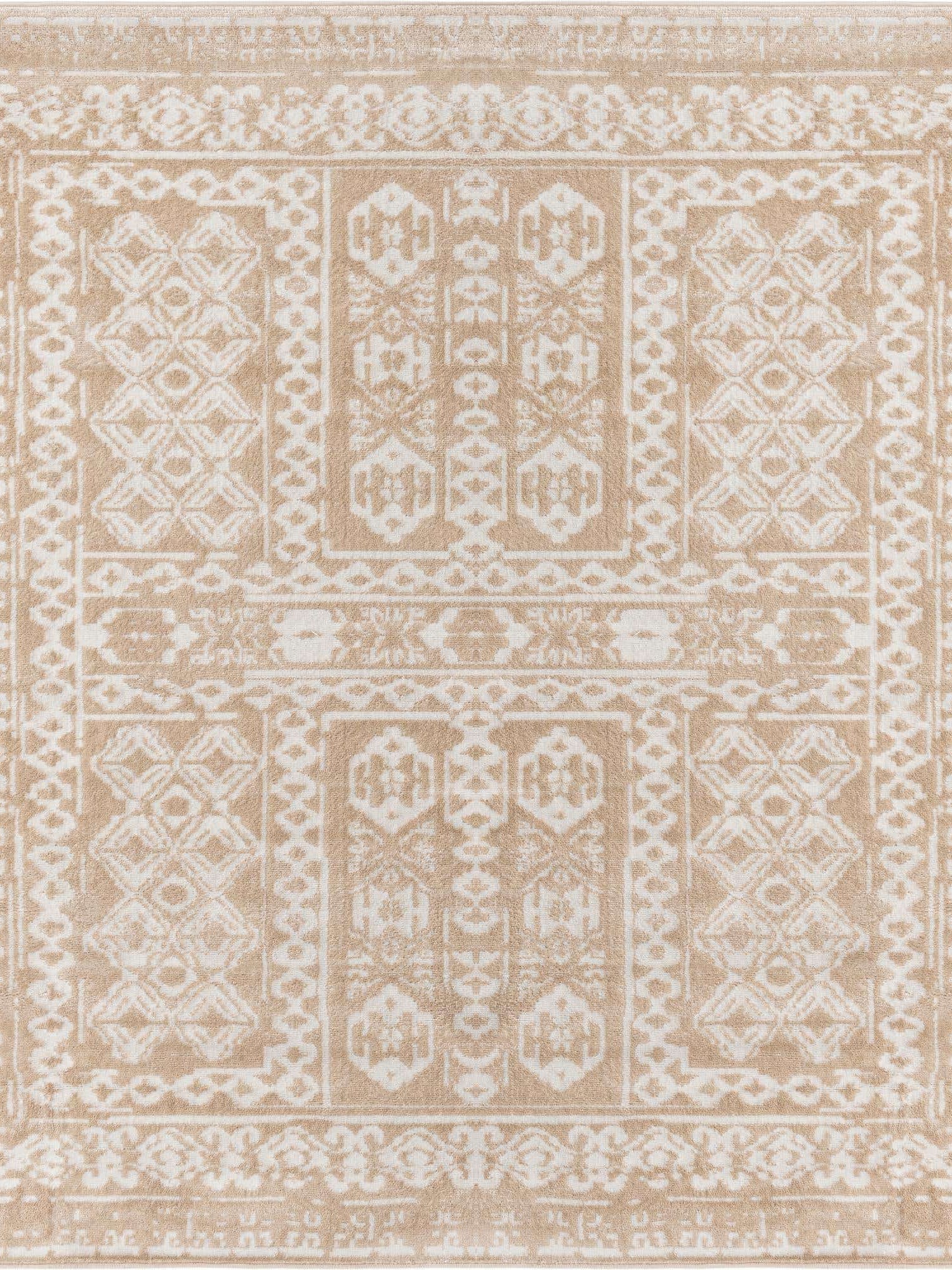 Washable Beige 7' 6 x 7' 6 Timeless Square Area Rug Easy to Clean Stain Resistant & Durable