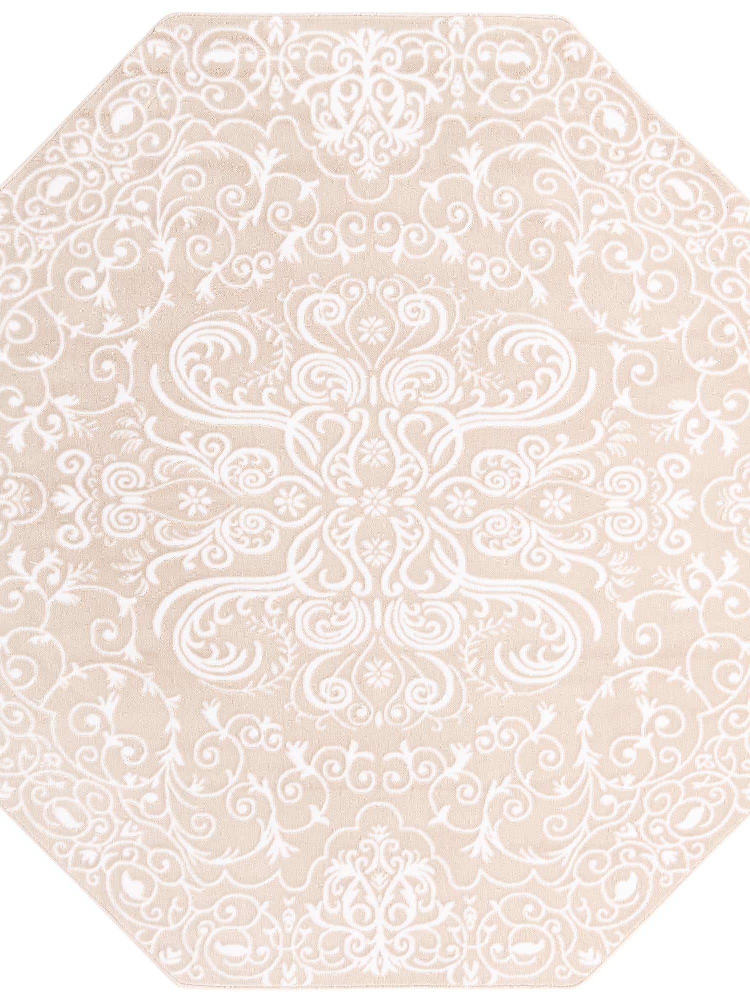 Beige 7' 10 x 7' 10 Rushmore Octagon Area Rug 55% Polypropylene & 45% Polyester Durable Quality Carpet for Indoor Home Decorating