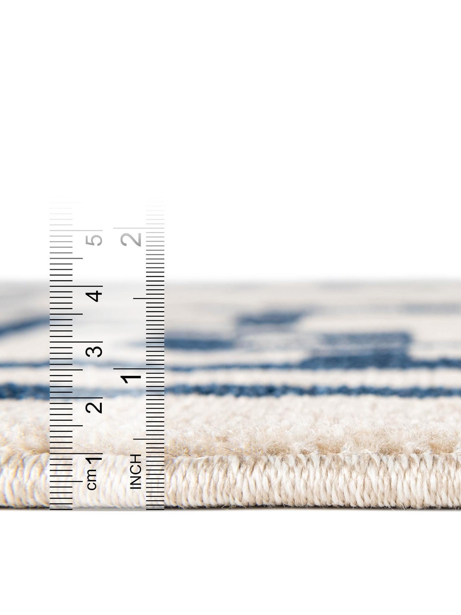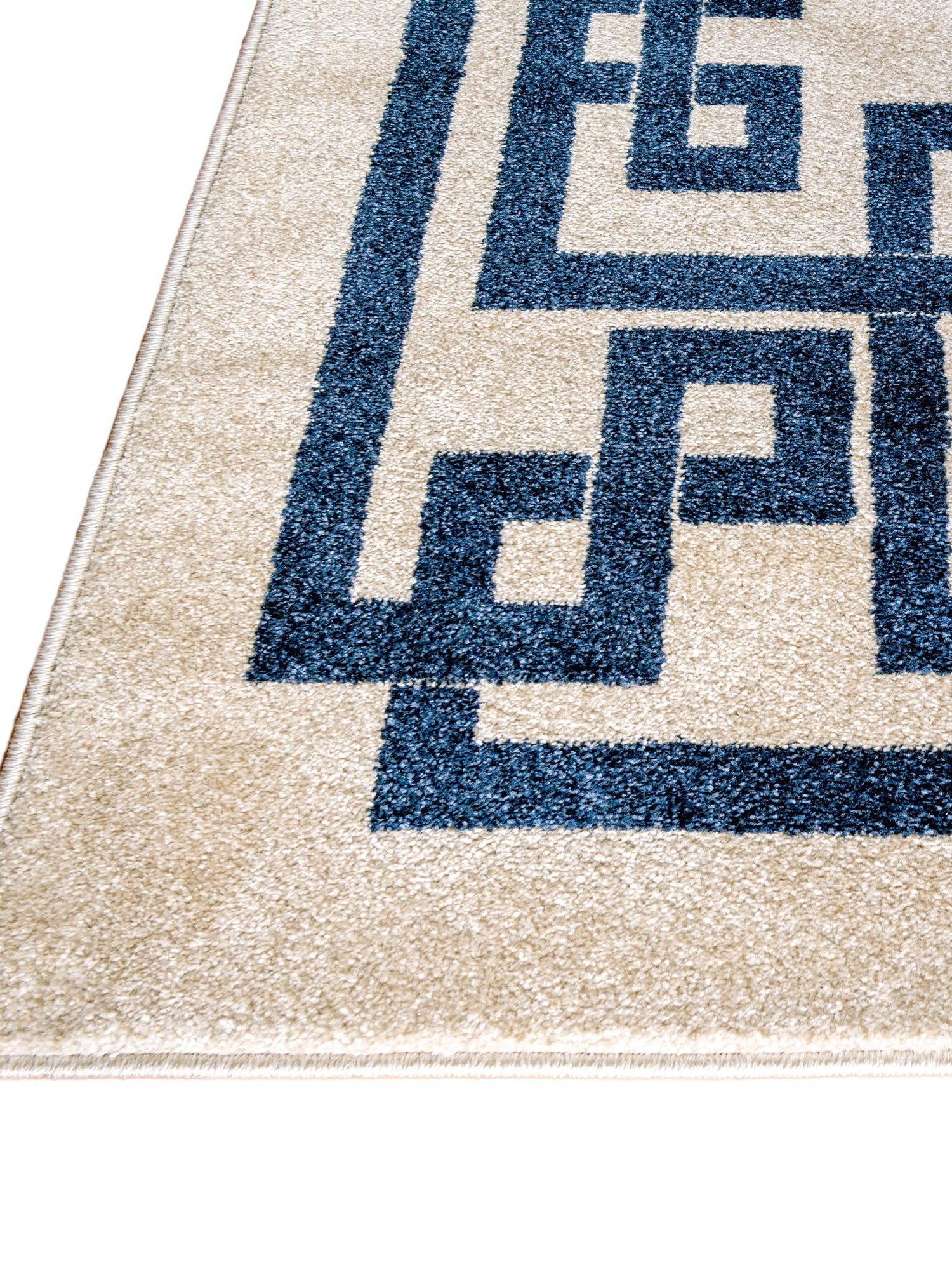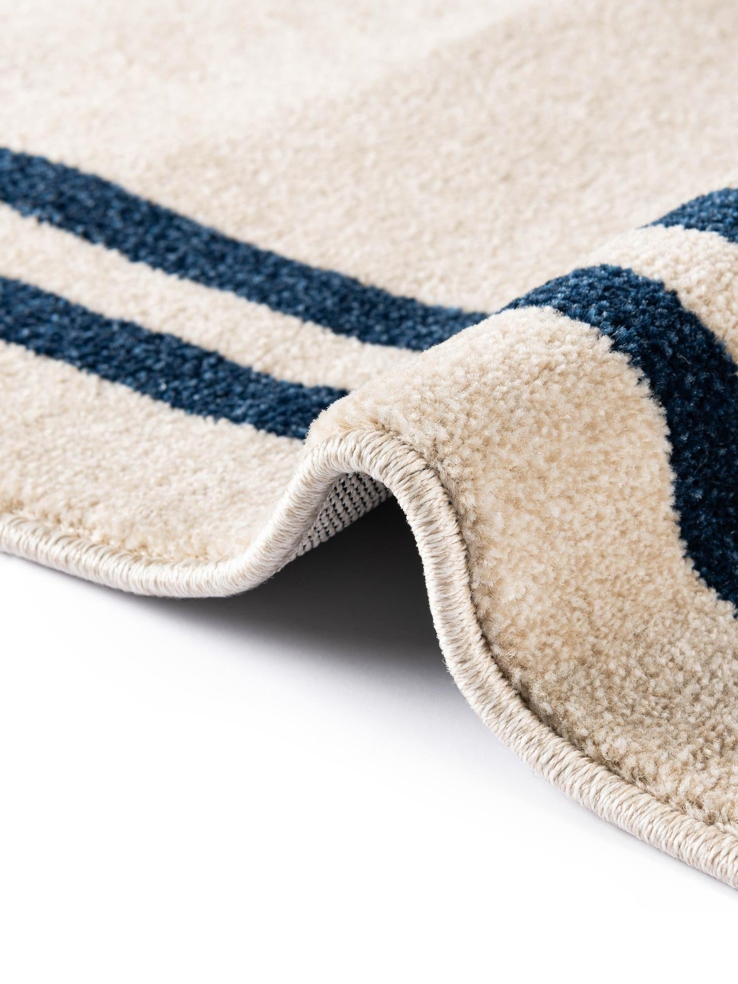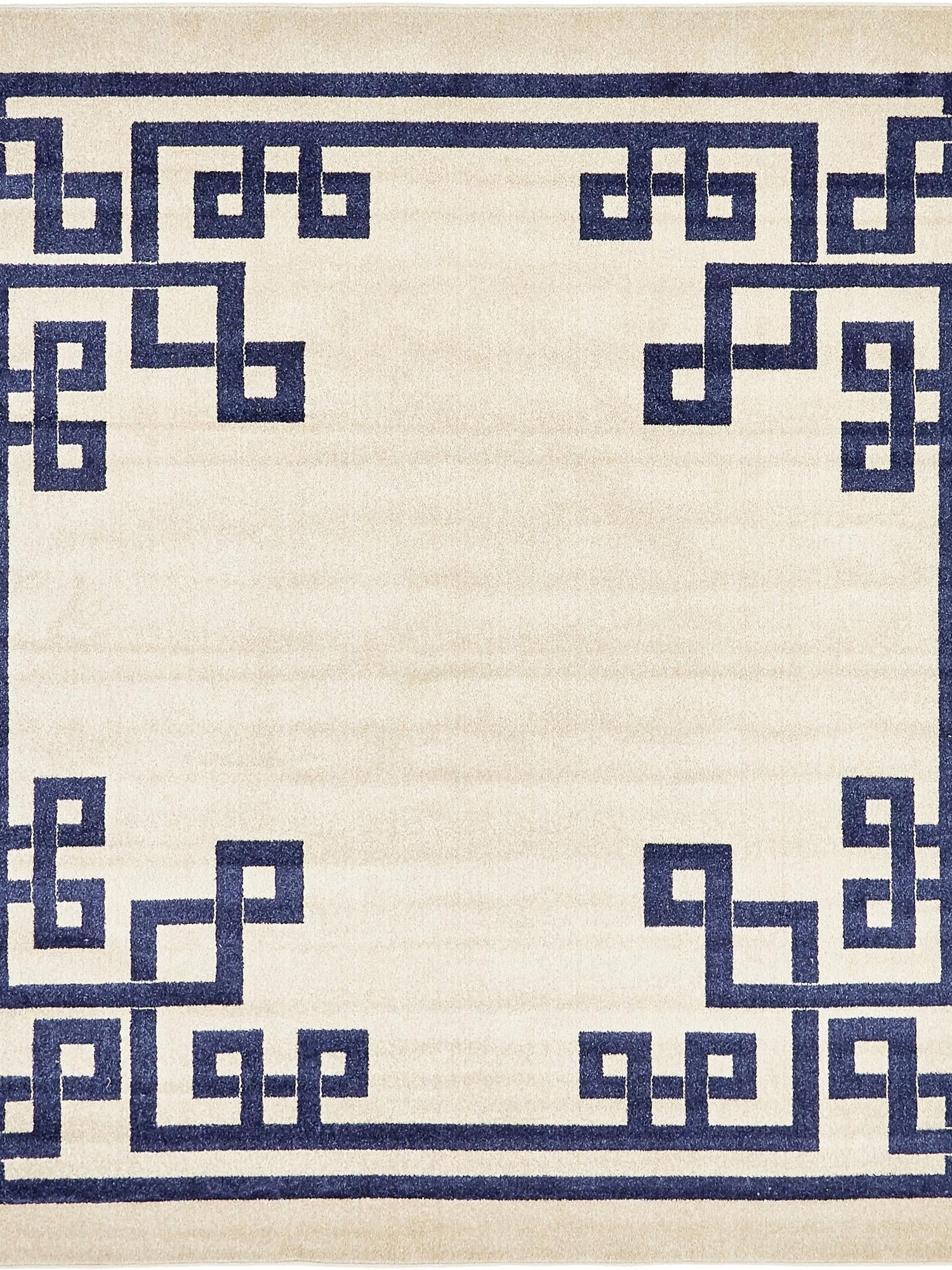 Beige and Blue 8' x 8' Athens Square Area Rug 100% Polypropylene With Cotton Backing Easy Clean Indoor Living Dining Room Bedroom Office Carpet