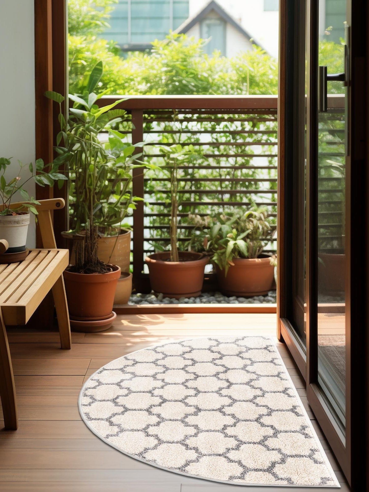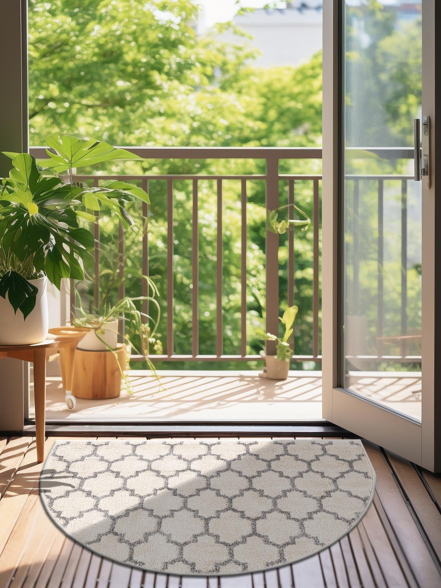 Beige and Gray 2' 7 x 4' 1 Trellis Hearth Half-Round Semici...
