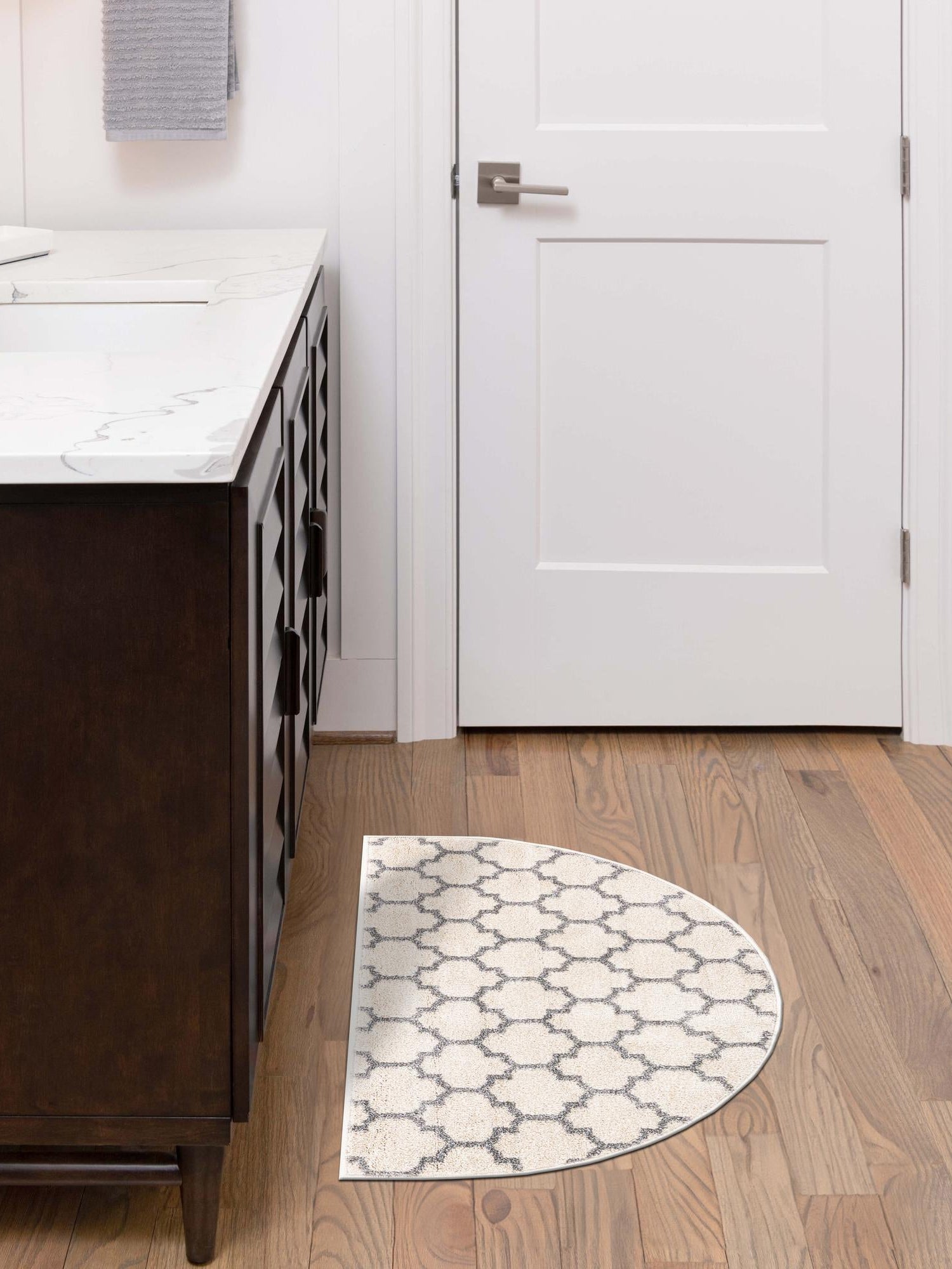 Beige and Gray 2' 7 x 4' 1 Trellis Hearth Half-Round Semicircle Area Rug