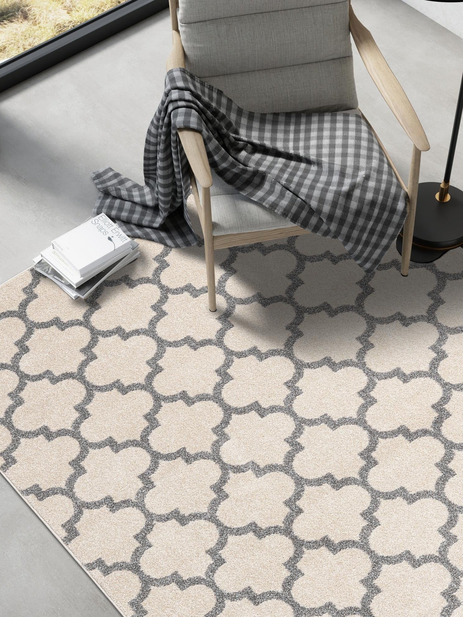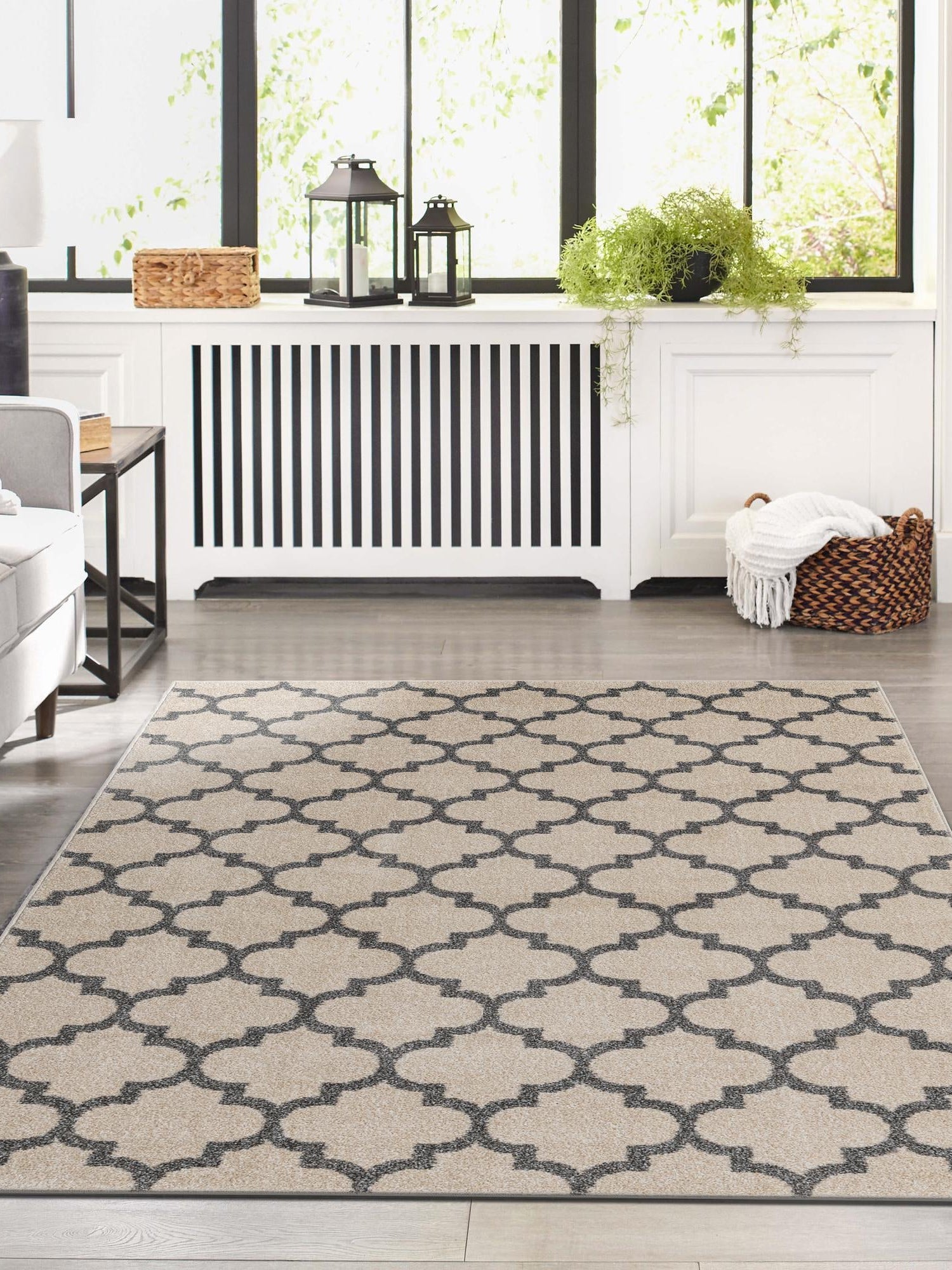 - Elegant Color Scheme: Featuring a sophisticated blend of beige and gray, this rug adds a touch of modern elegance to your decor. The neutral tones ensure that it complements a variety of color palettes, making it a versatile choice for any room. Transform your floors into a stylish statement with this eye-catching color combination.