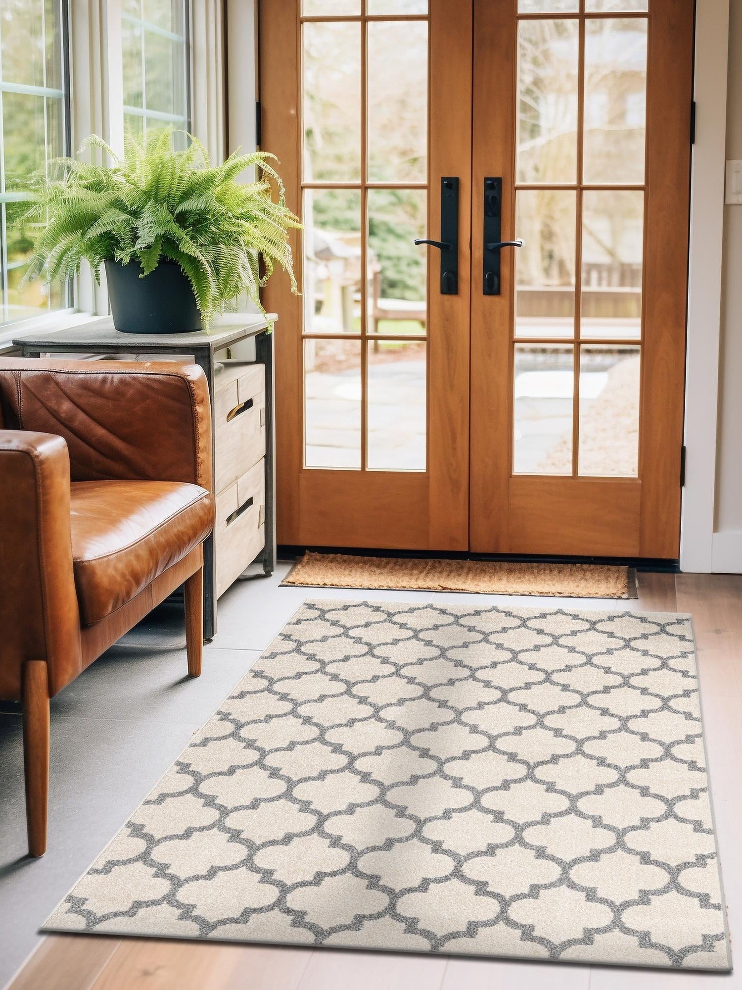 - Modern Geometric Design: The geometric pattern of this rug adds a trendy touch to any room, making it ideal for contemporary settings. Its stylish design creates a focal point while enhancing the overall aesthetic appeal of your space. Embrace modernity in your decor with this chic and stylish geometric rug.