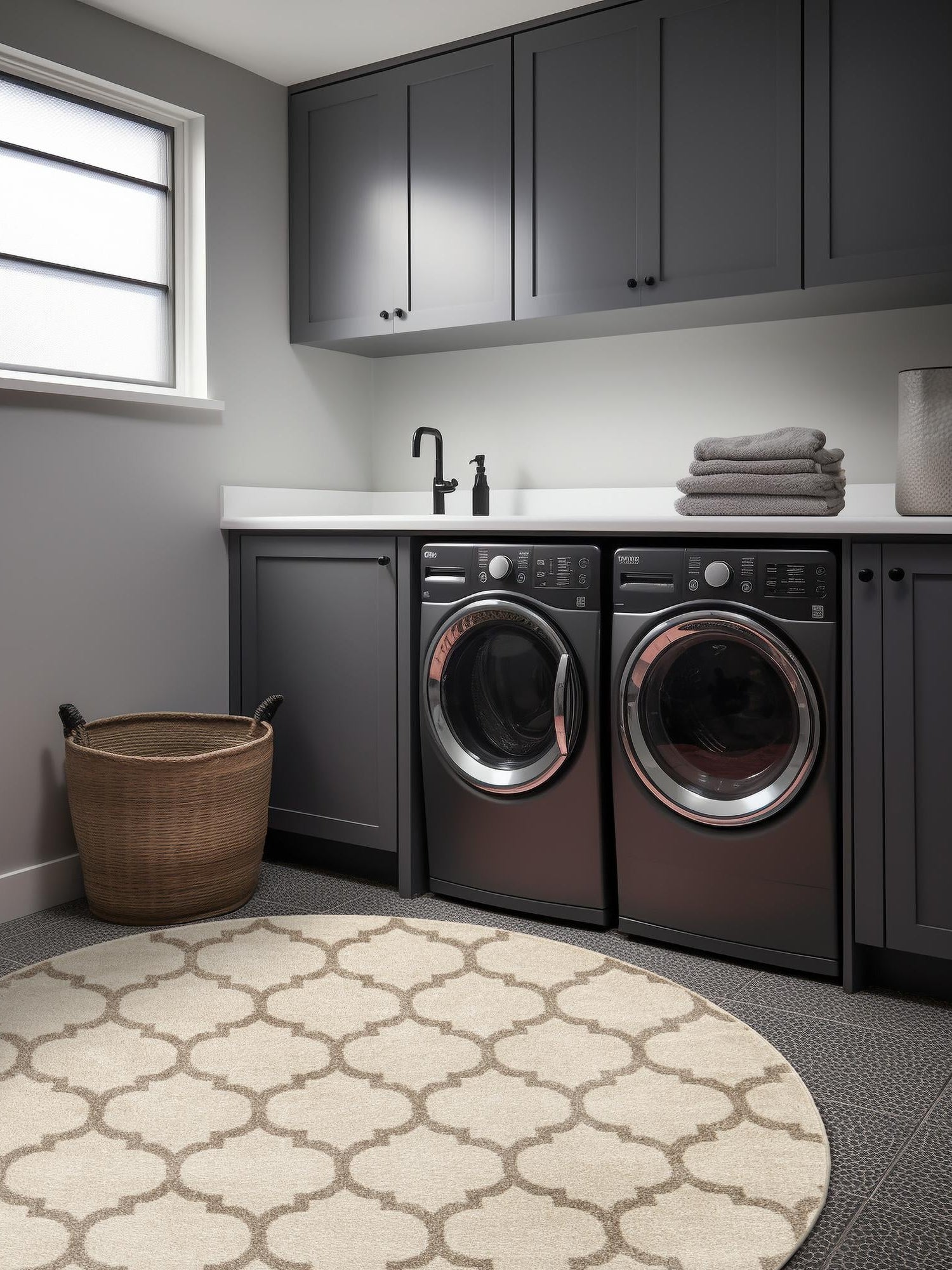Washable Gray 2' x 2' Timeless Round Area Rug Easy to Clean Stain Resistant & Durable