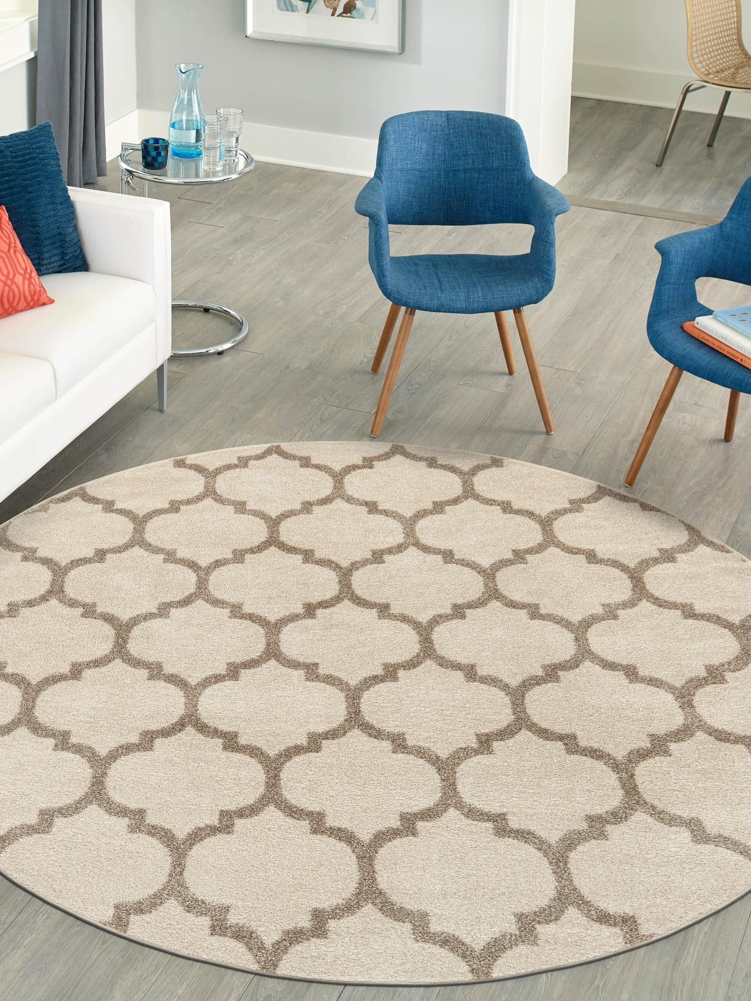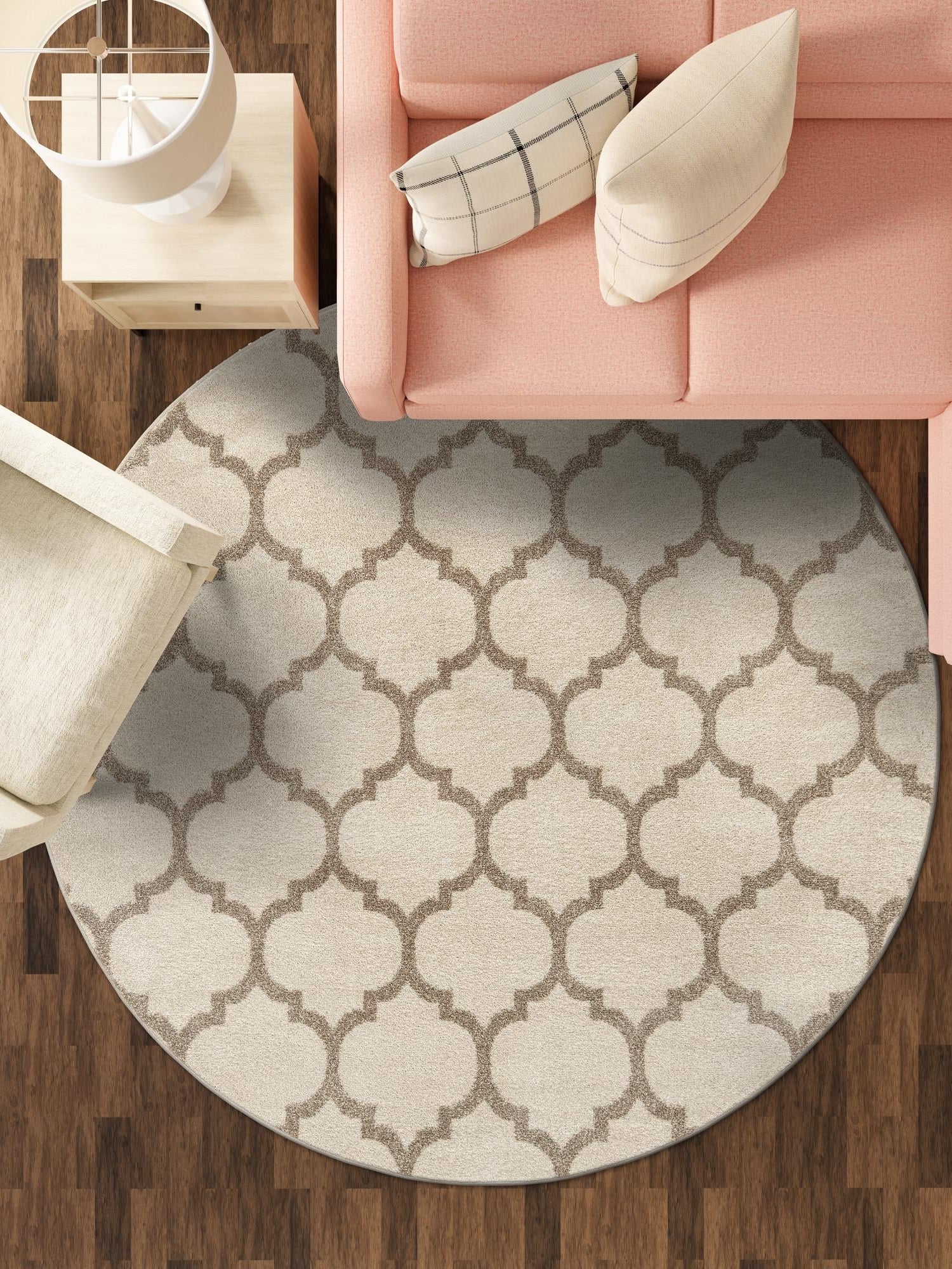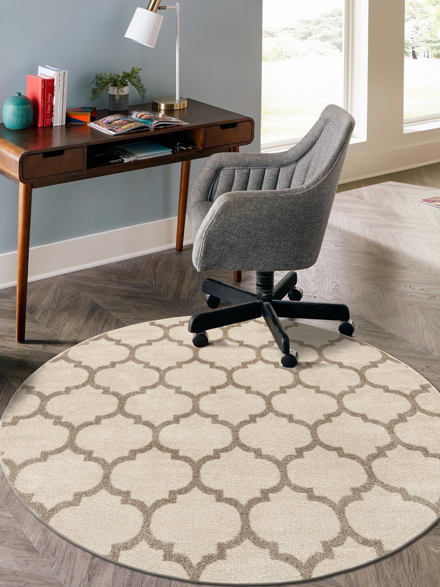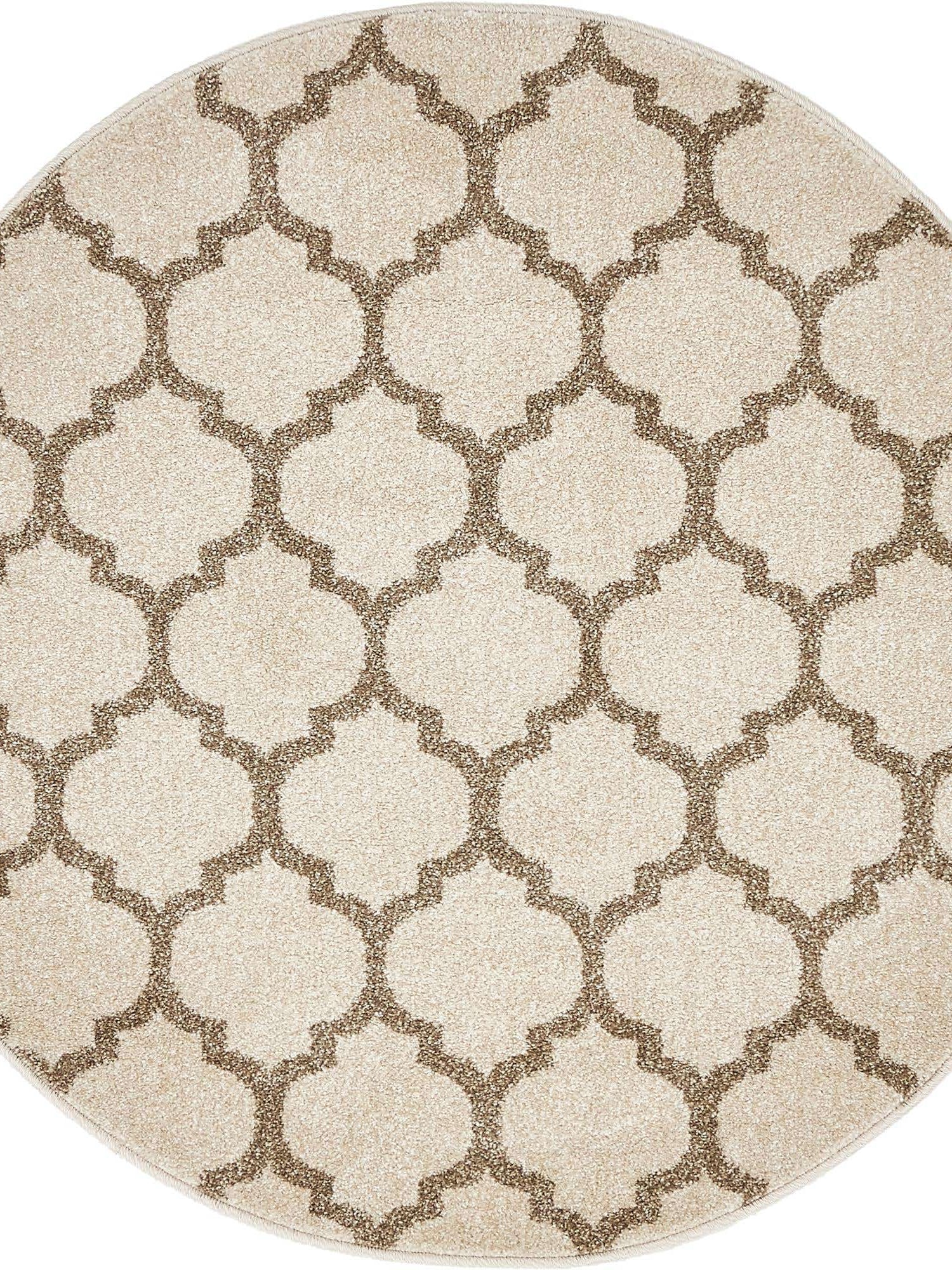 Beige and Light Brown 3' 1 x 3' 1 Trellis Round Area Rug