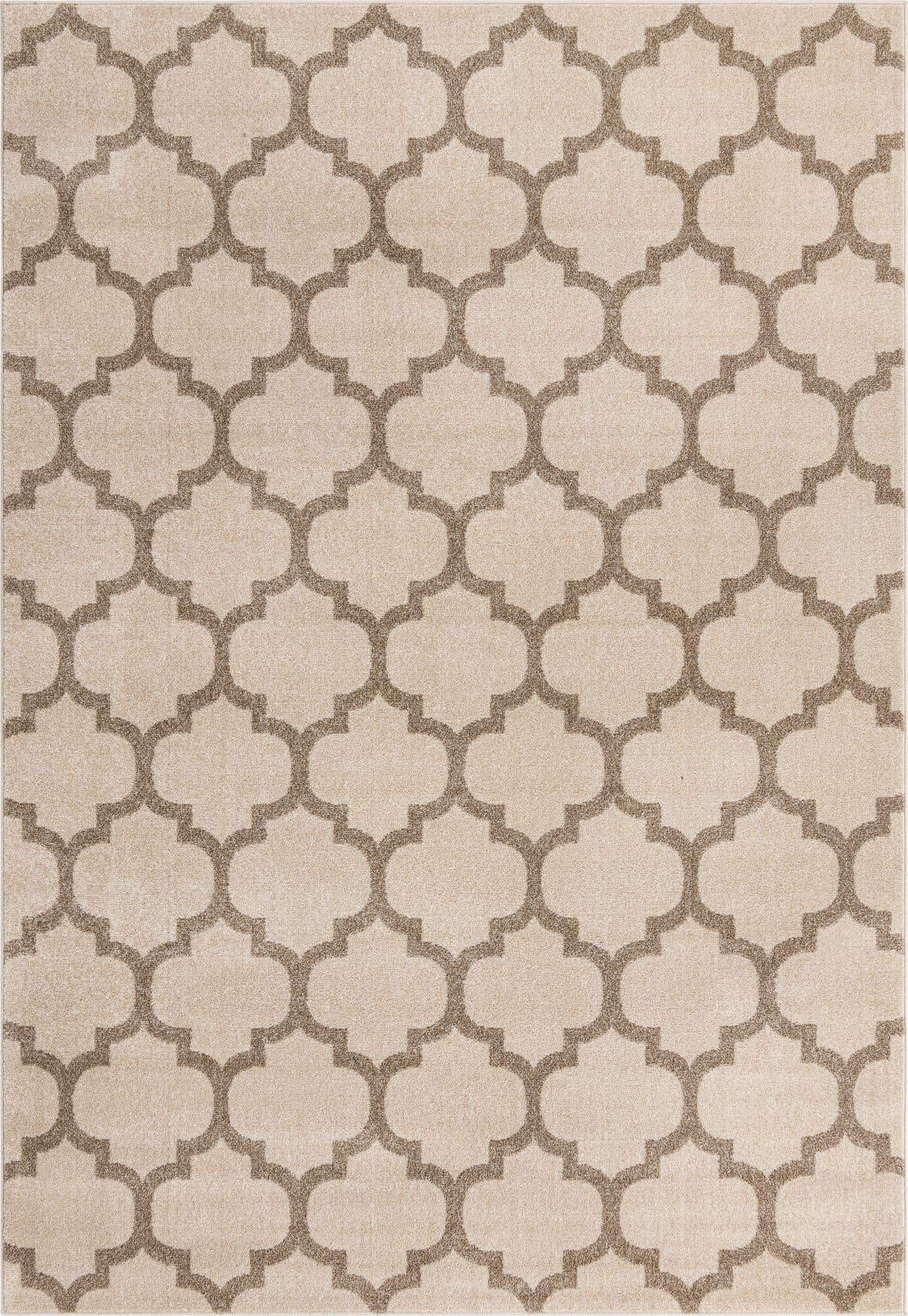 Beige and Light Brown 7' 1 x 10' Trellis Rectangle Area Rug