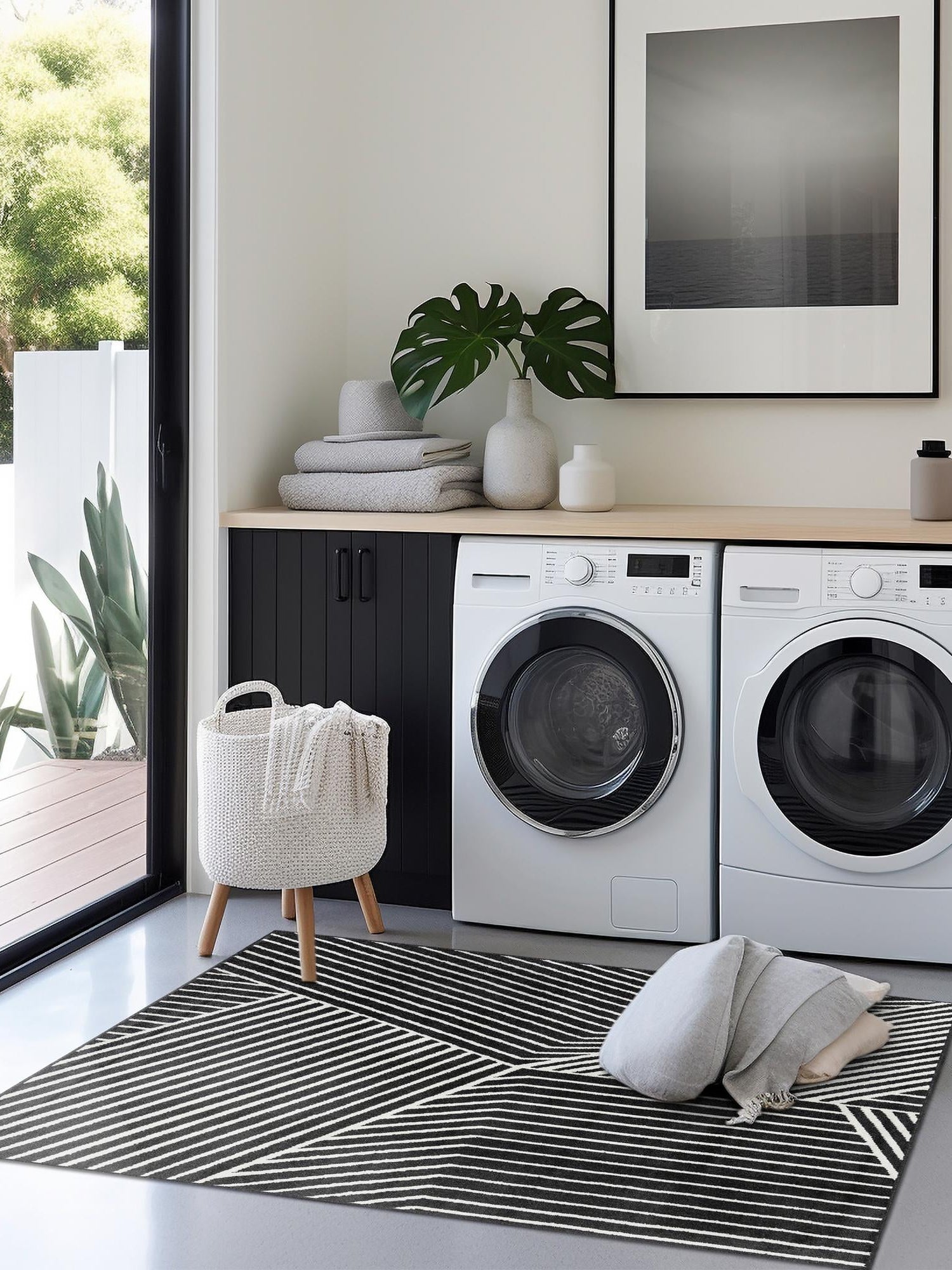 - Elegant Design: Featuring a sleek black color, this rug effortlessly complements a variety of interior decor styles, from modern to contemporary. The geometric patterns add a touch of sophistication and visual interest, making it an ideal choice for those looking to elevate their home decor. Showcase your taste with a versatile piece that adapts to your style.
