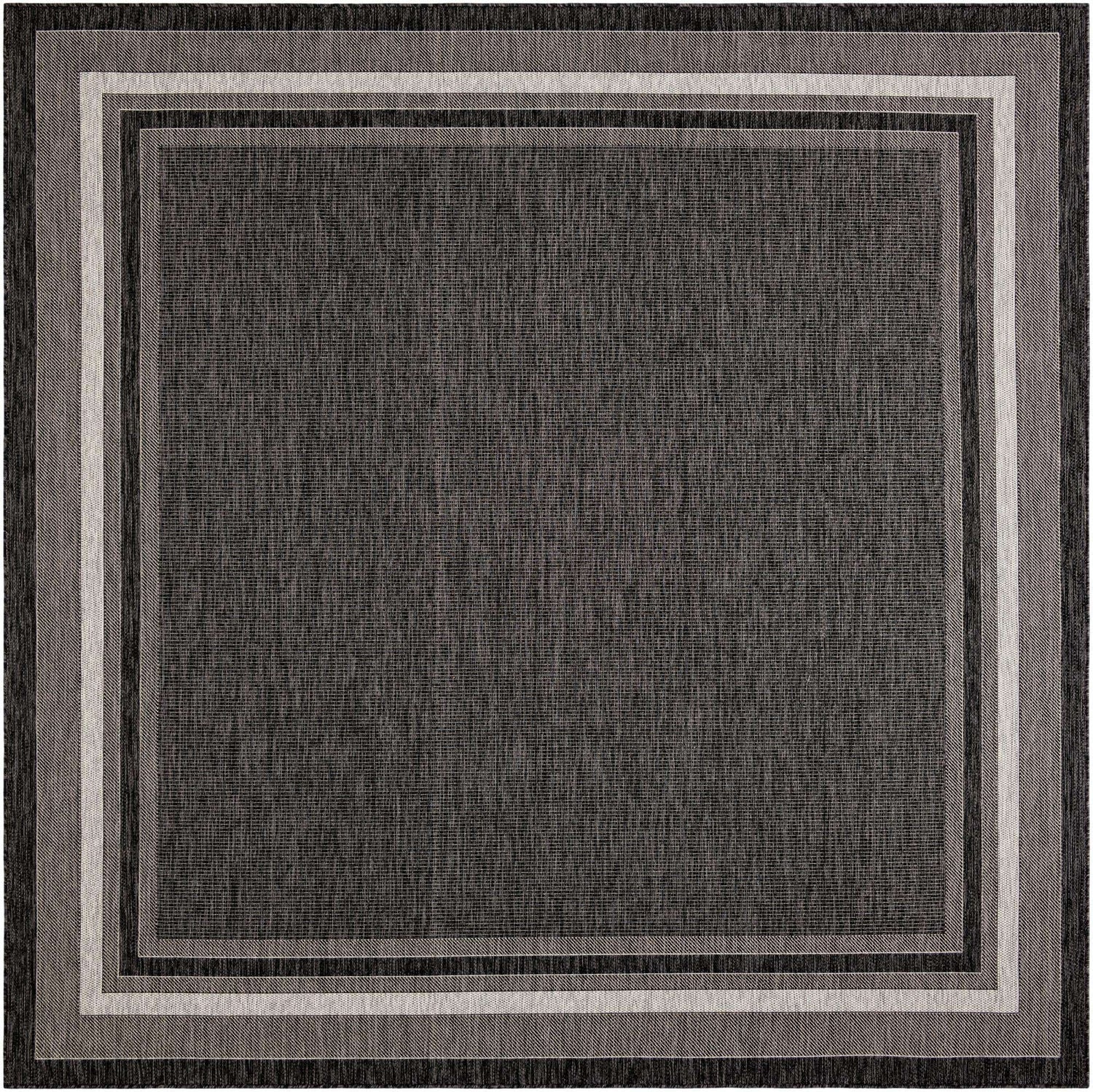 Black 10' x 10' Outdoor Border Square Area Rug Weather Resistant for Patio, Deck, Terrace, Balcony, Porch