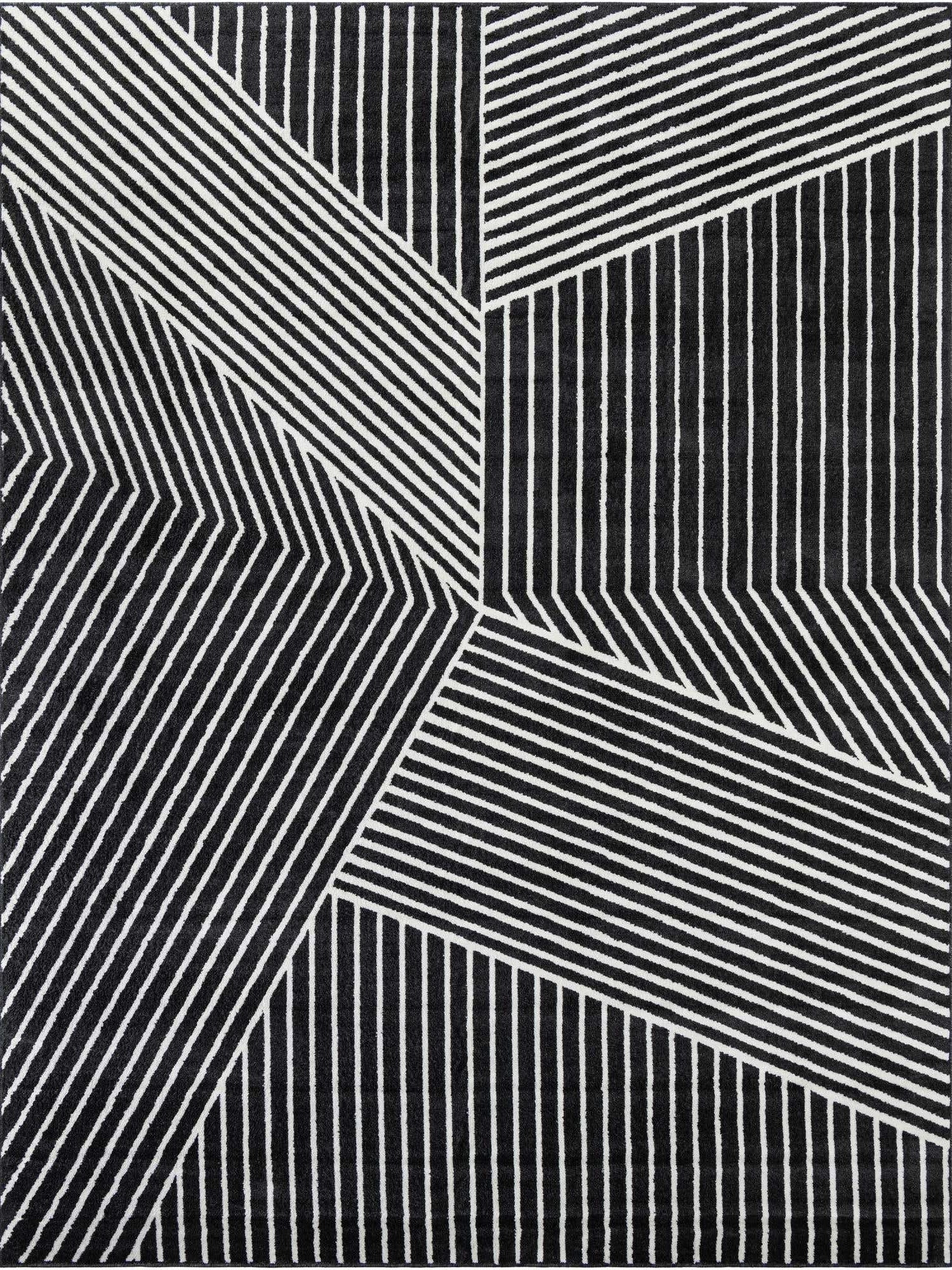 Black 10' x 13' 1 Norge Rectangle Area Rug 100% Polypropylene Easy Clean Non Shed Stain Resistant Modern Carpet for Home Interior Design