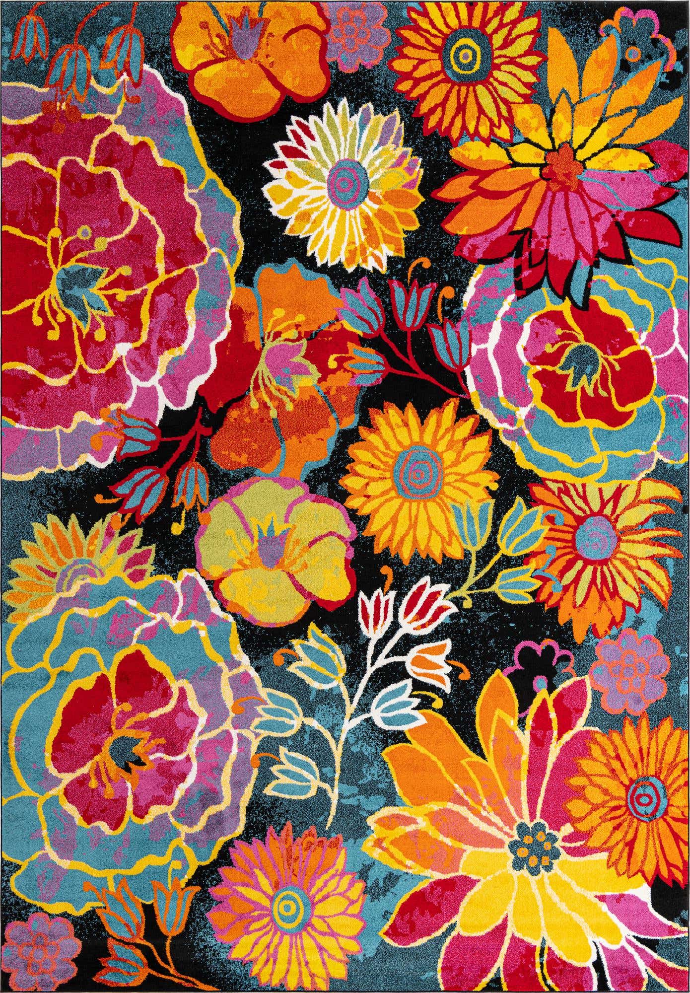 Black 10' x 14' Lyon Rectangle Area Rug Vivid Colorful Abst...