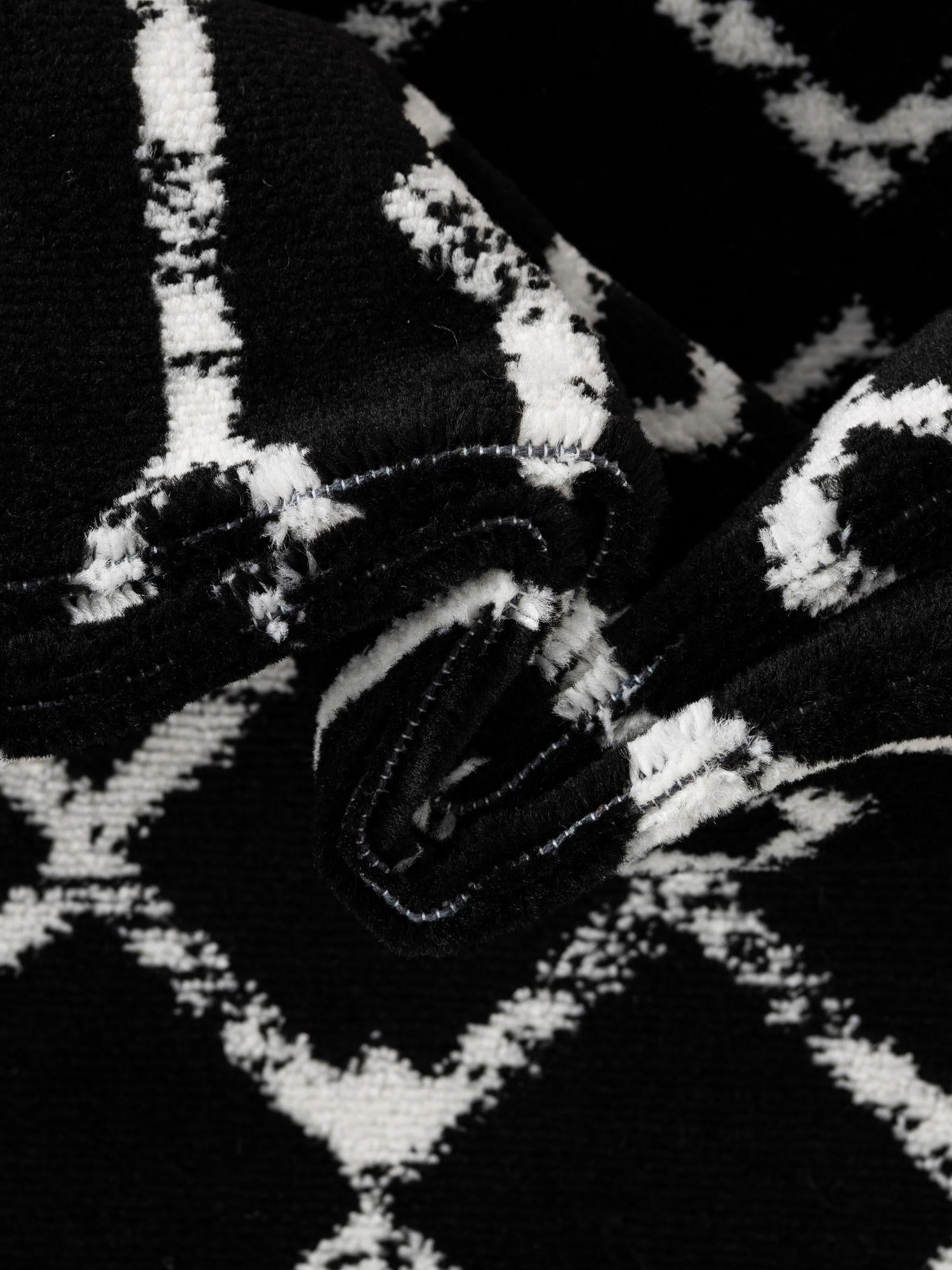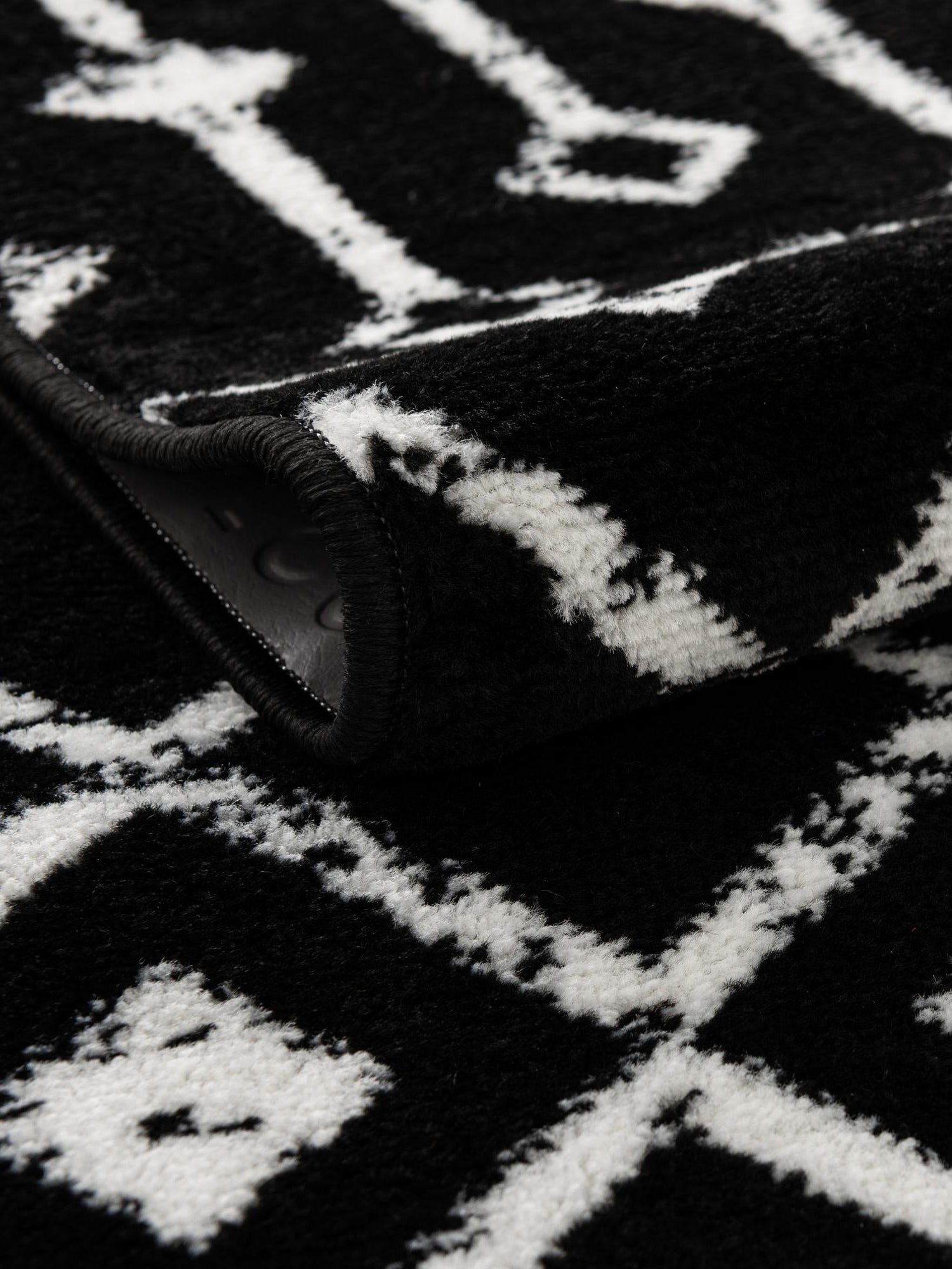- Striking Color: Featuring a sleek black hue, this rug adds a modern and sophisticated flair to any room. The bold color serves as a beautiful backdrop for its geometric patterns, ensuring it stands out while complementing your existing decor. It's an ideal choice for homeowners looking to make a statement with their interior design.