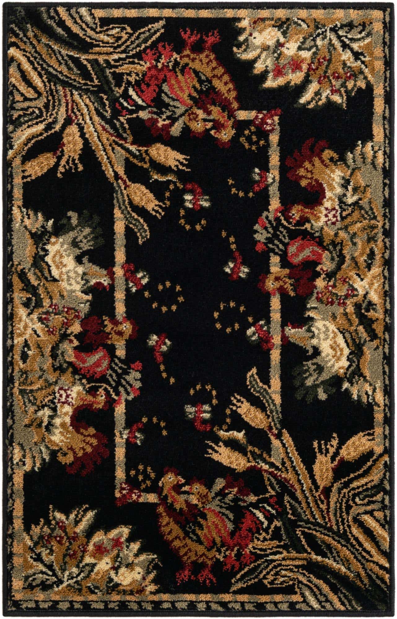 Black 2' x 3' 1 Barnyard Rectangle Area Rug 100% Polypropylene With Cotton Backing Traditional Cottage Rustic Classical Carpet for Living Office Bedroom Dining Room Easy to Clean Long Lasting & Durable Decor
