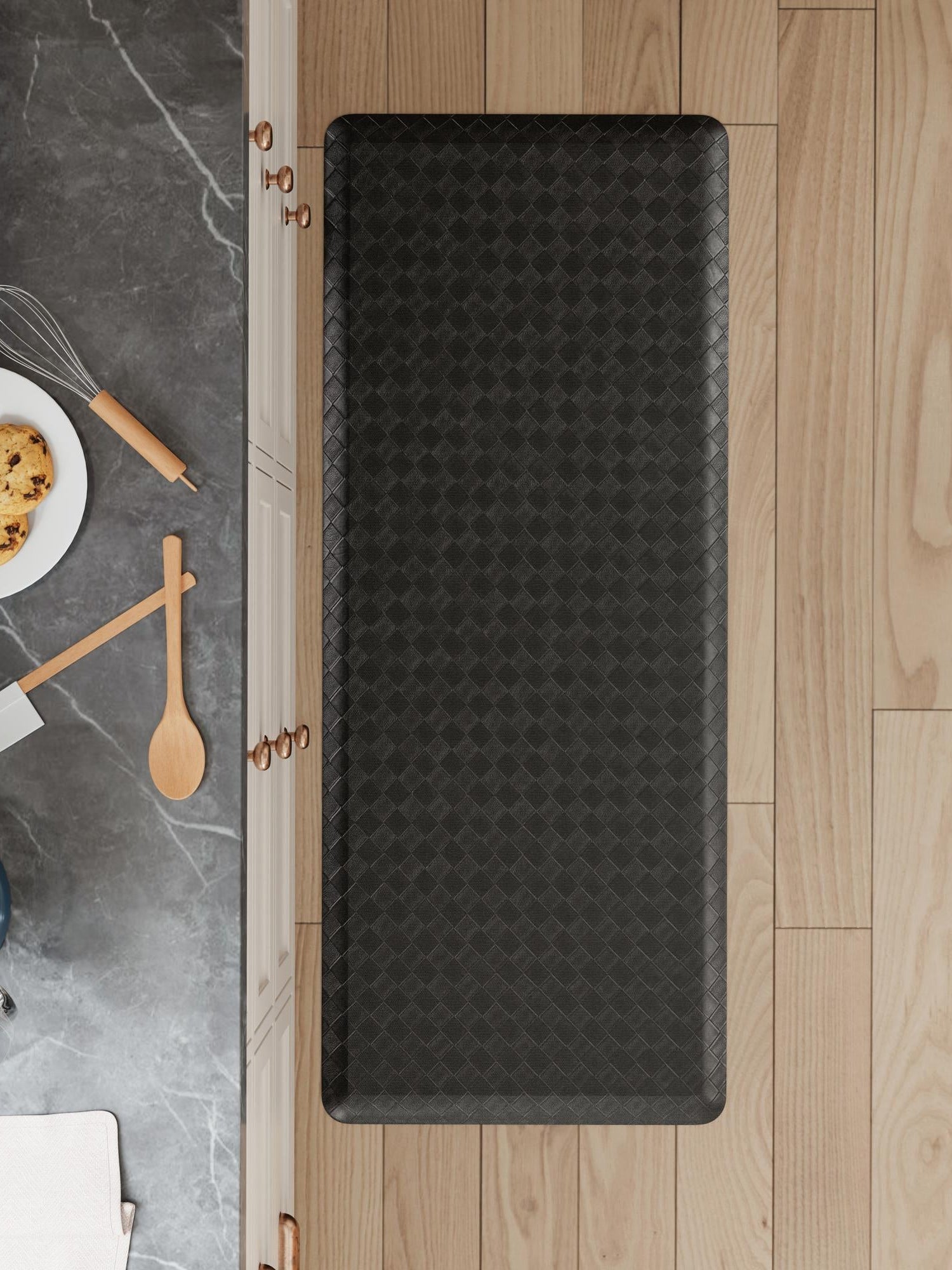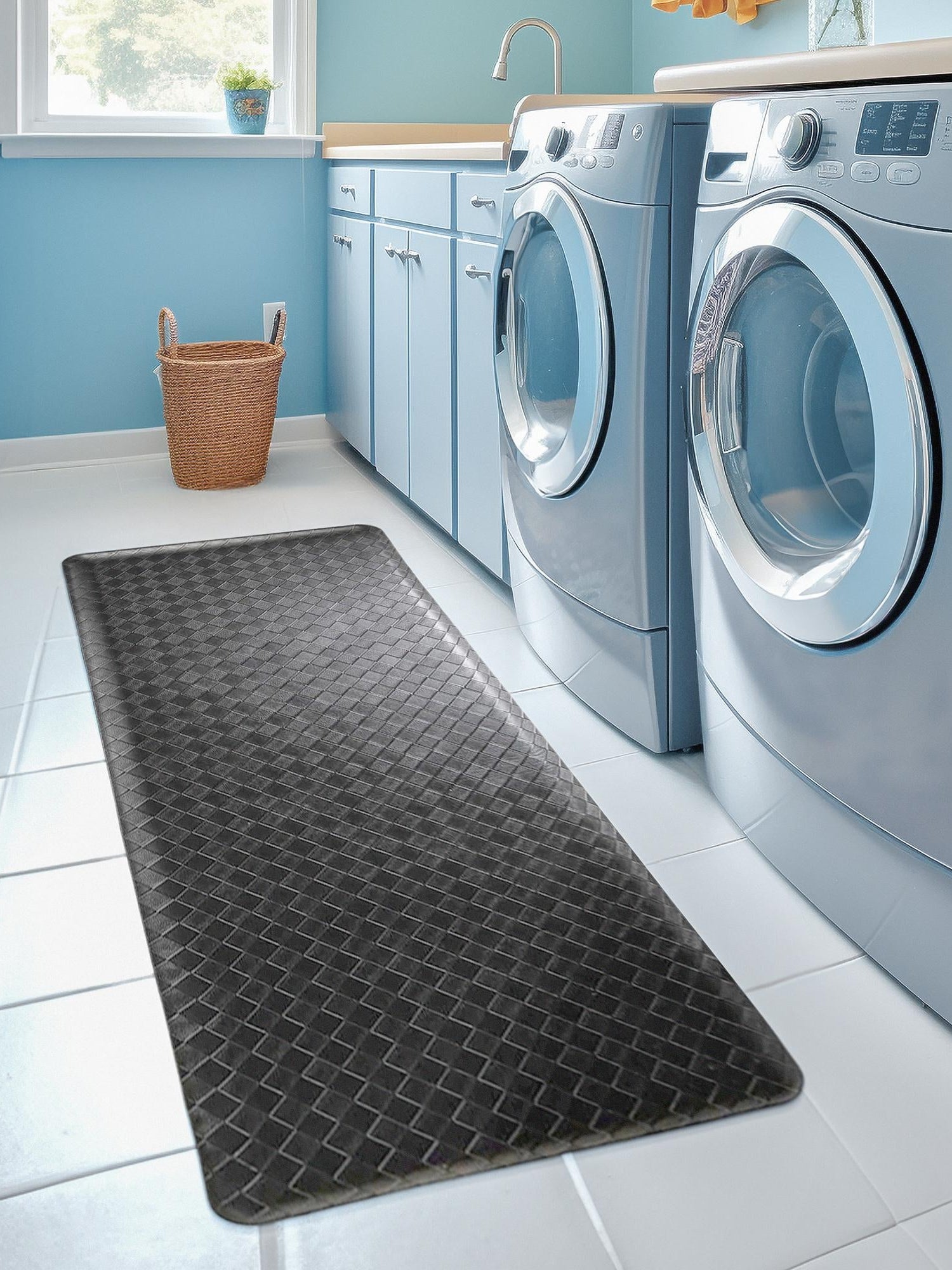 Anti-Fatigue Black 2' x 5' Comfort Standing Mat for Kitchen, Bath, Laundry Room, Office Colorful PVC Durable Non-Slip Water Resistant Spill Proof Rug Thick Rubber