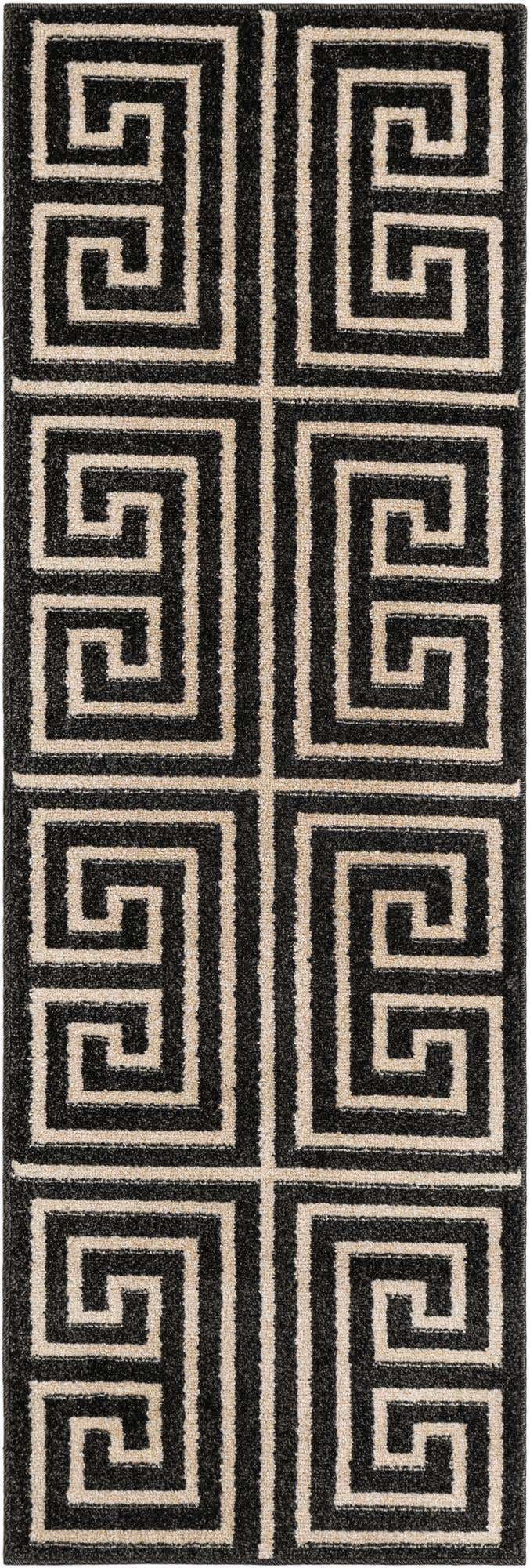 Black 2' x 6' 1 Athens Runner Area Rug 100% Polypropylene With Cotton Backing Easy Clean Indoor Living Dining Room Bedroom Office Carpet