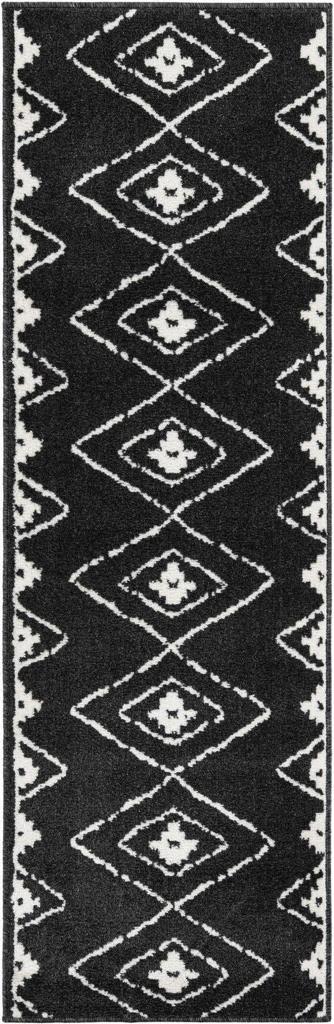 Black 2' x 6' 1 Norge Runner Area Rug 100% Polypropylene Easy Clean Non Shed Stain Resistant Modern Carpet for Home Interior Design
