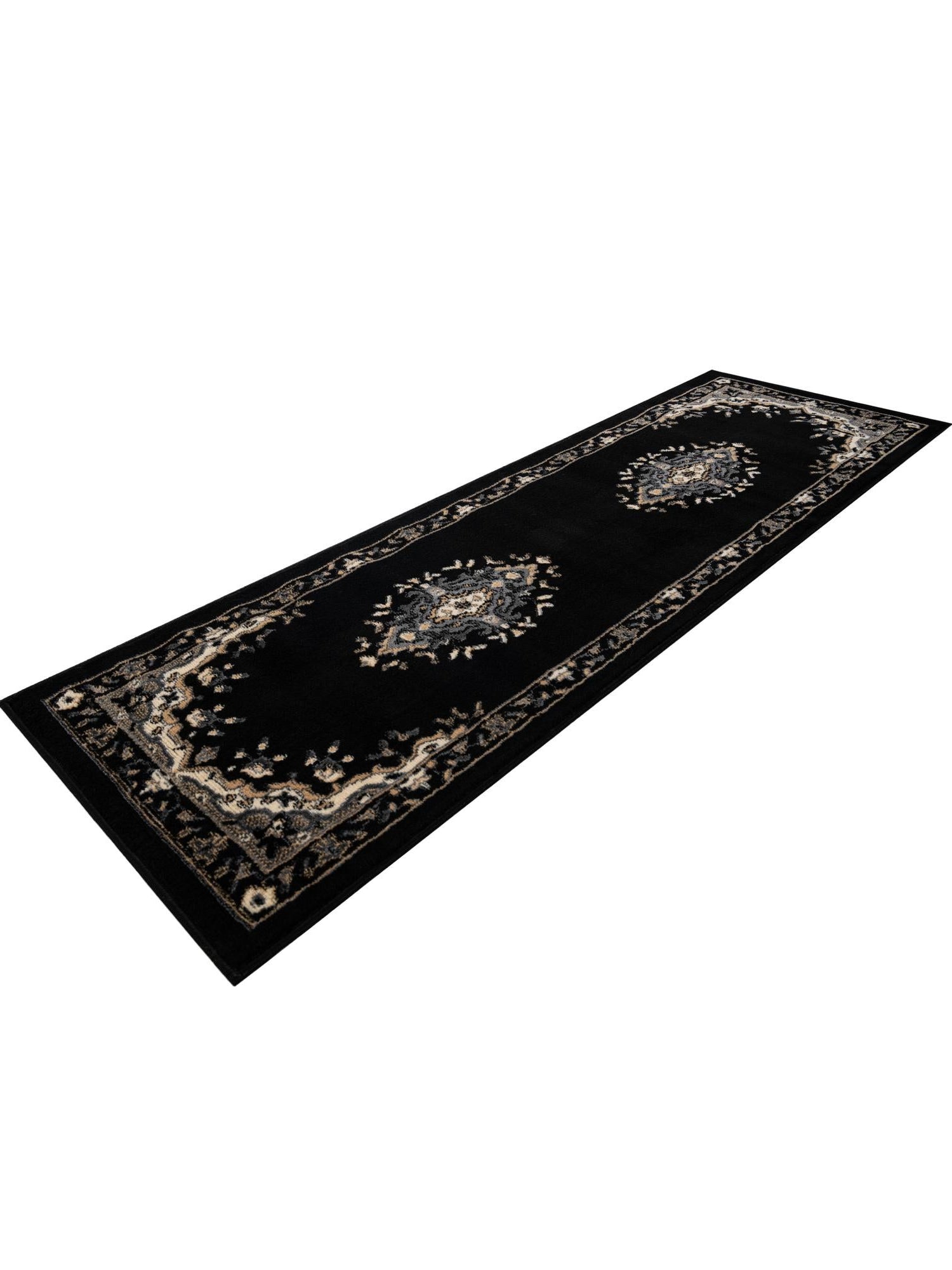Black 2' x 6' 1 Reza Runner Area Rug 100% Polypropylene Easy Clean Traditional Motif Classic Carpet for Home Interiors
