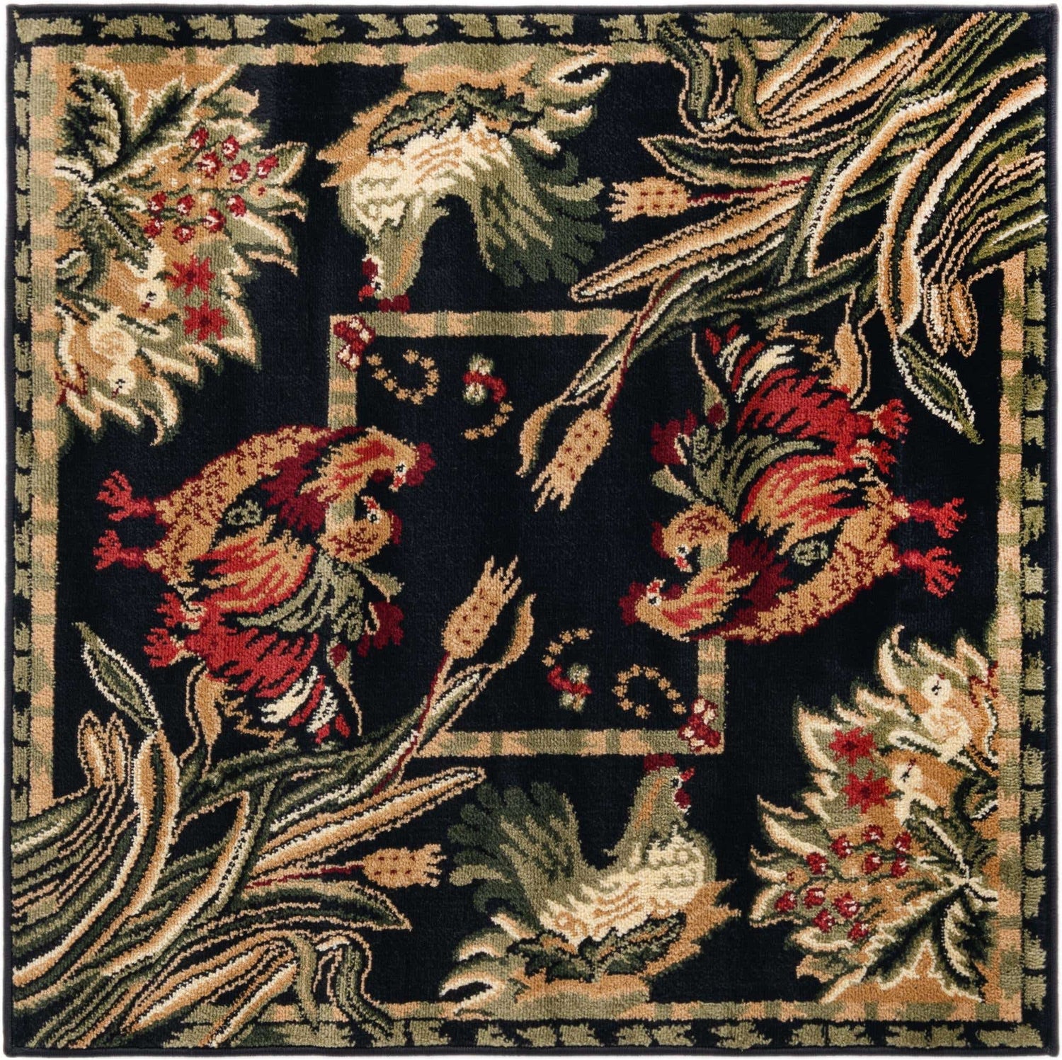 Black 3' 1 x 3' 1 Barnyard Square Area Rug 100% Polypropylene With Cotton Backing Traditional Cottage Rustic Classical Carpet for Living Office Bedroom Dining Room Easy to Clean Long Lasting & Durable Decor