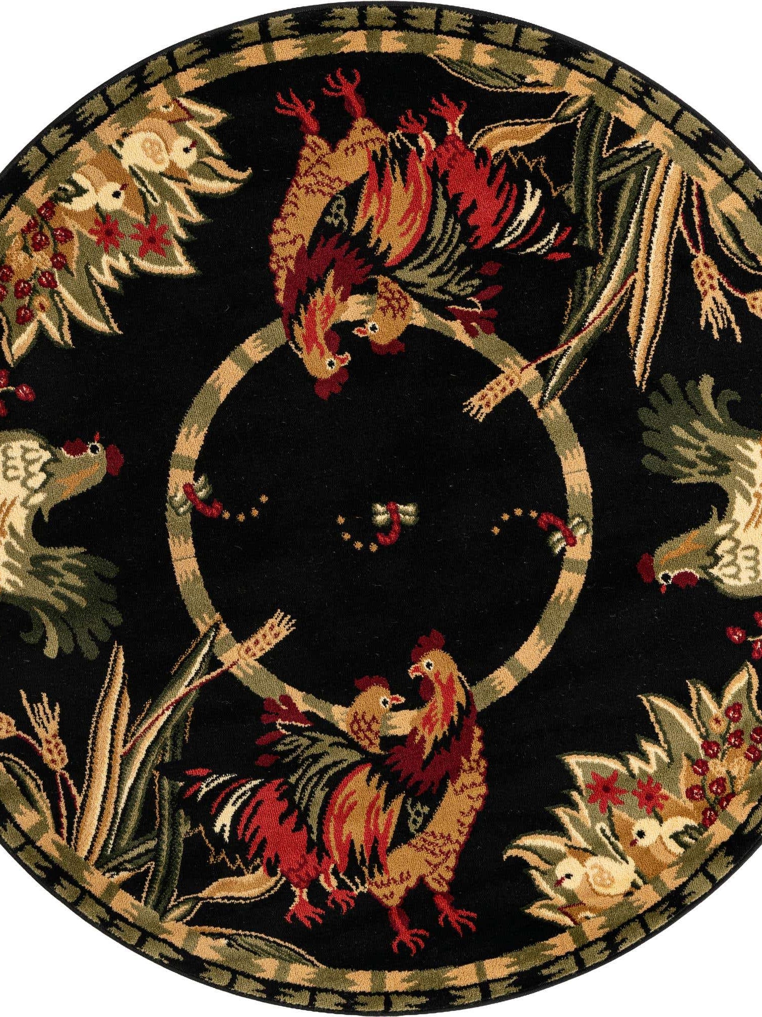 Black 3' 1 x 3' 1 Barnyard Round Area Rug 100% Polypropylene With Cotton Backing Traditional Cottage Rustic Classical Carpet for Living Office Bedroom Dining Room Easy to Clean Long Lasting & Durable Decor