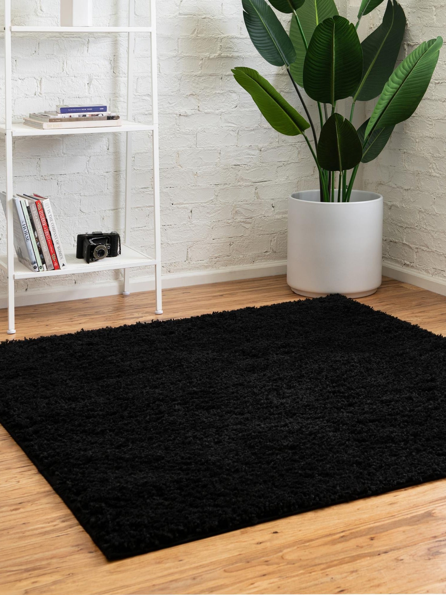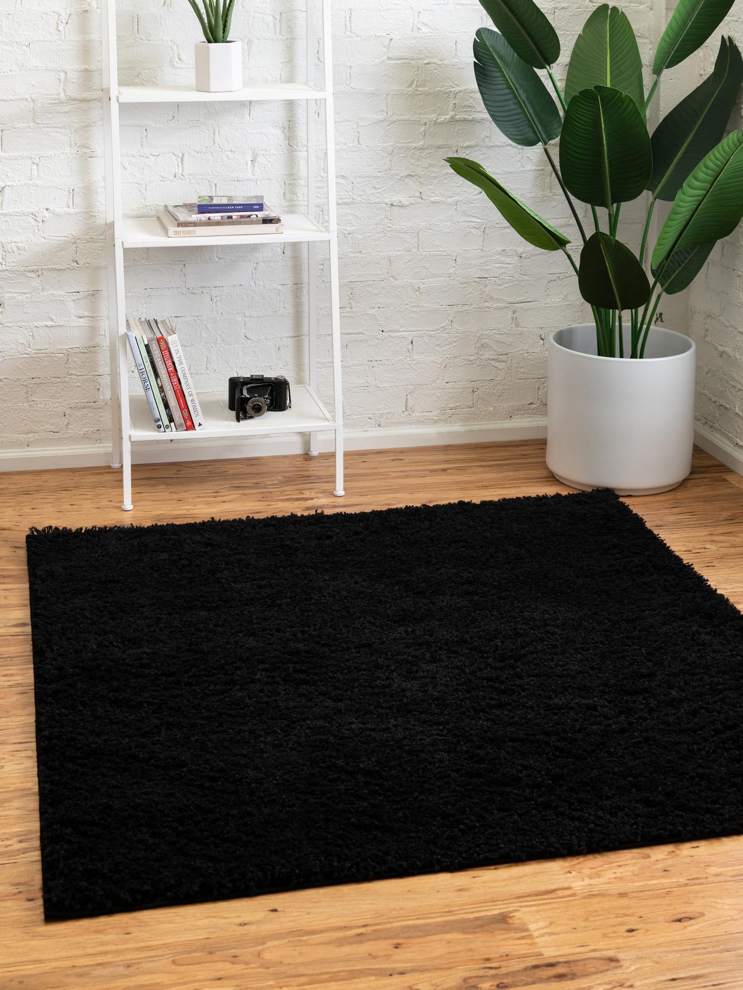 Black 3' 3 x 3' 3 Everyday Shag Square Area Rug Thick Soft Touch Fluffy & Plush Shaggy Pile 100% Polypropylene With Cotton Backing Durable Carpet