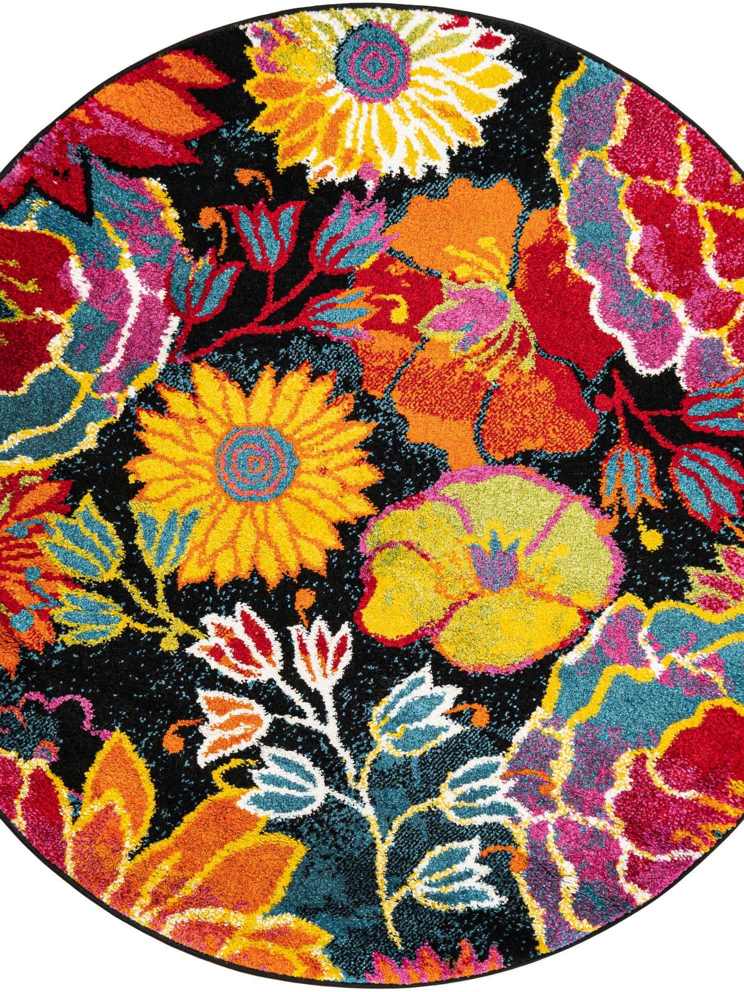 Black 4' 1 x 4' 1 Lyon Round Area Rug Vivid Colorful Abstra...