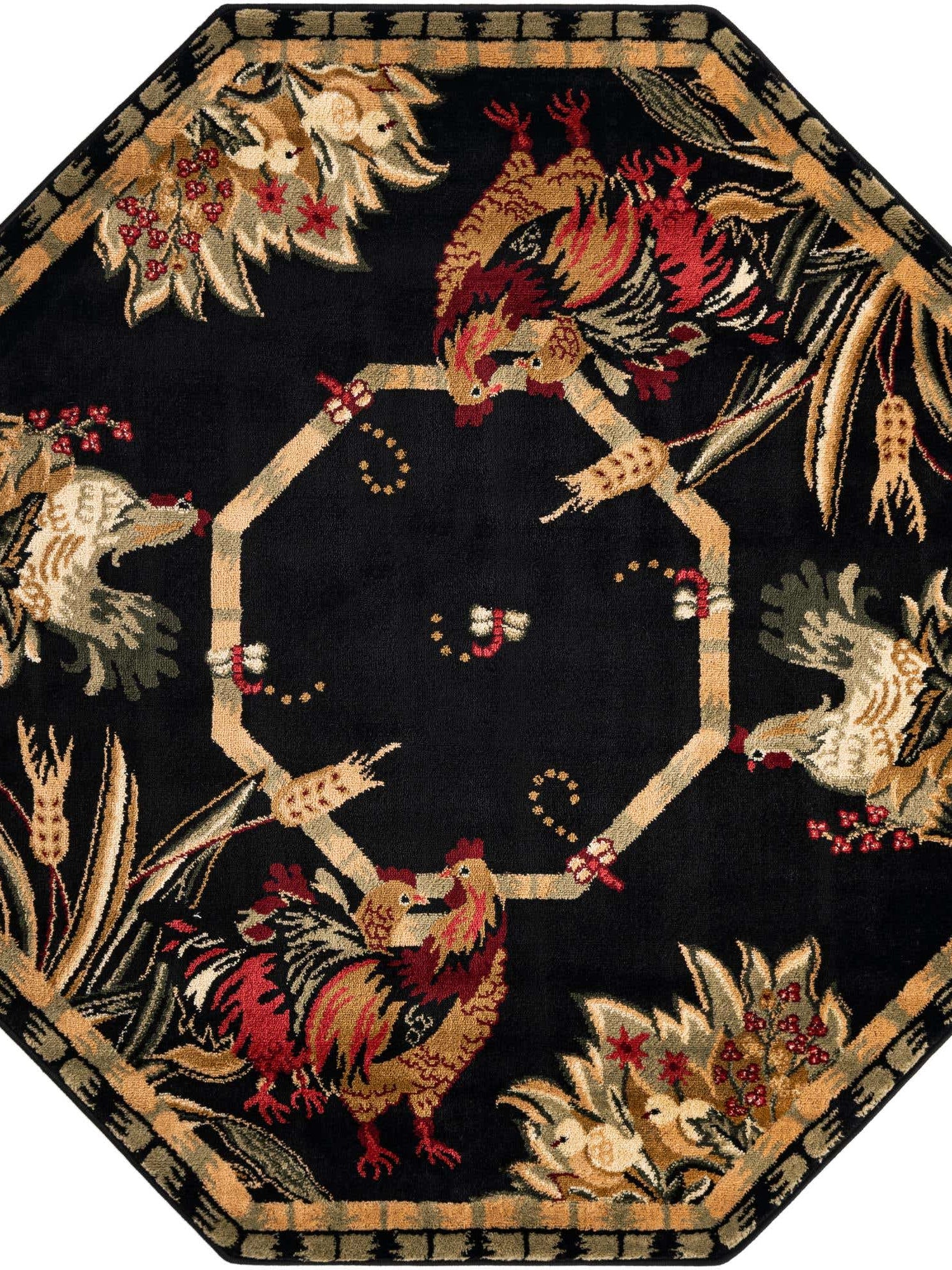 Black 5' 3 x 5' 3 Barnyard Octagon Area Rug 100% Polypropylene With Cotton Backing Traditional Cottage Rustic Classical Carpet for Living Office Bedroom Dining Room Easy to Clean Long Lasting & Durable Decor