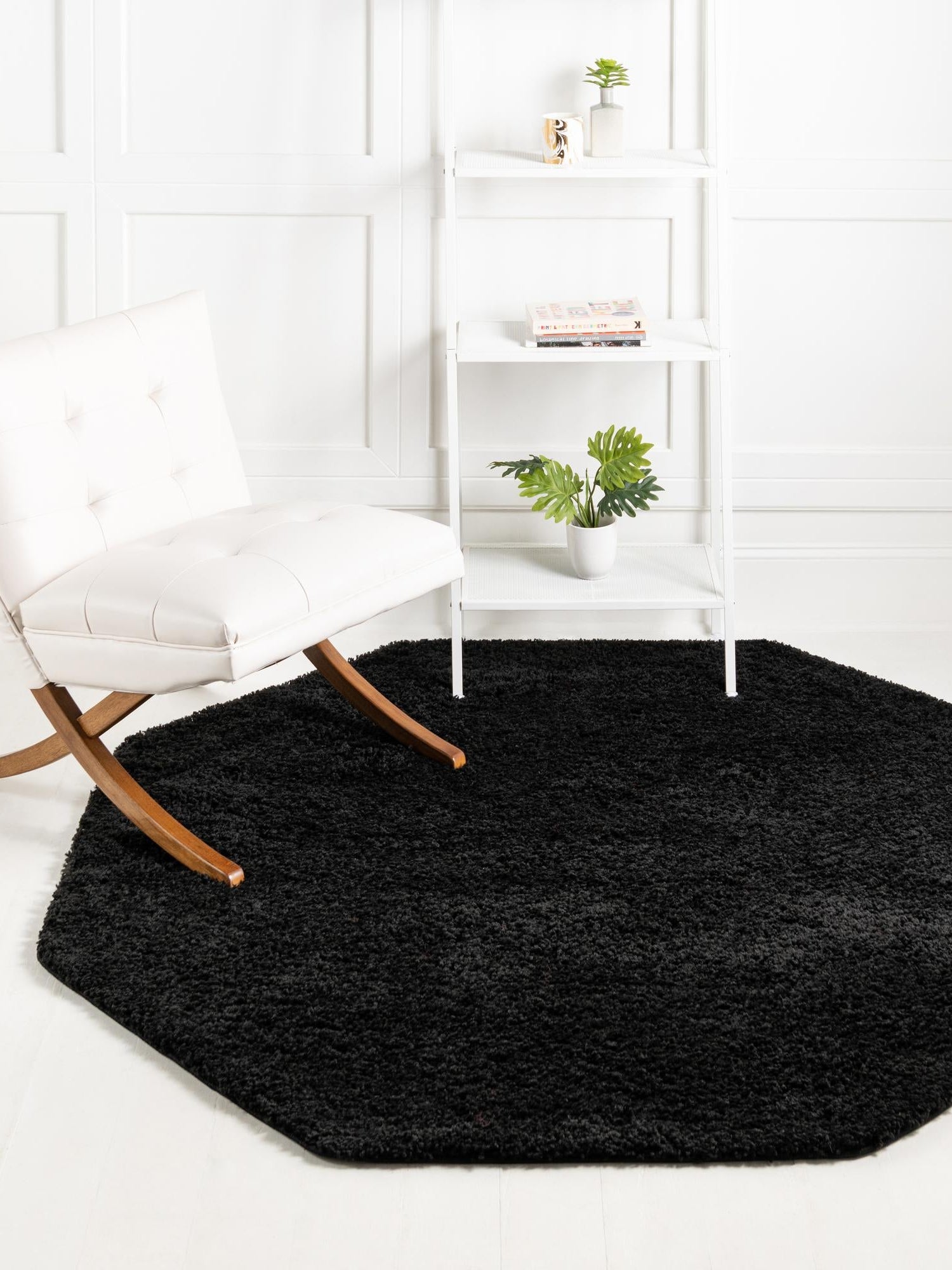 Black 6' x 6' Everyday Shag Octagon Area Rug Thick Soft Tou...