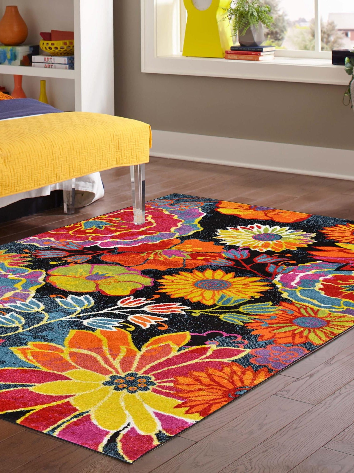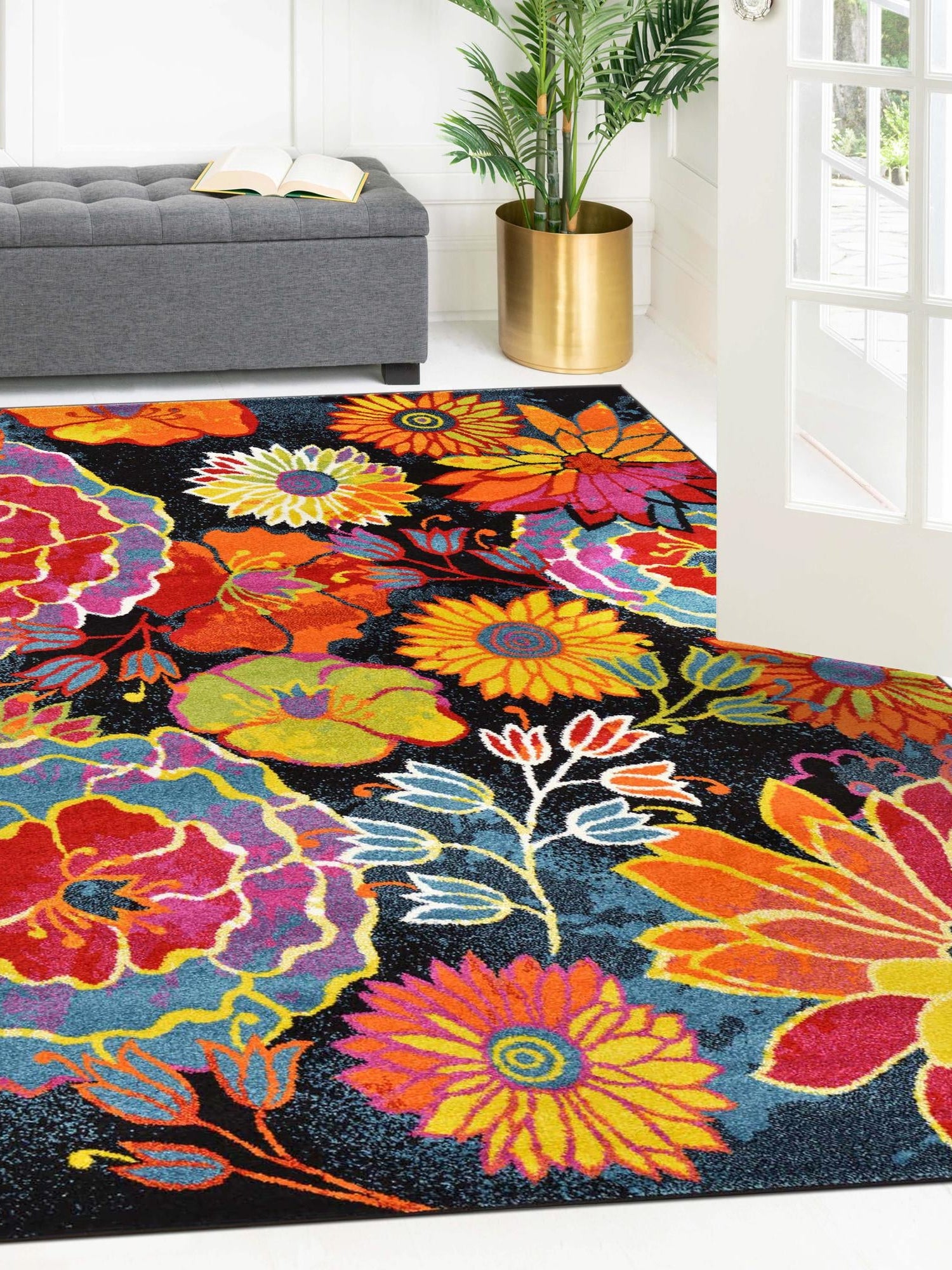 Black 7' 1 x 10' Lyon Rectangle Area Rug Vivid Colorful Abs...