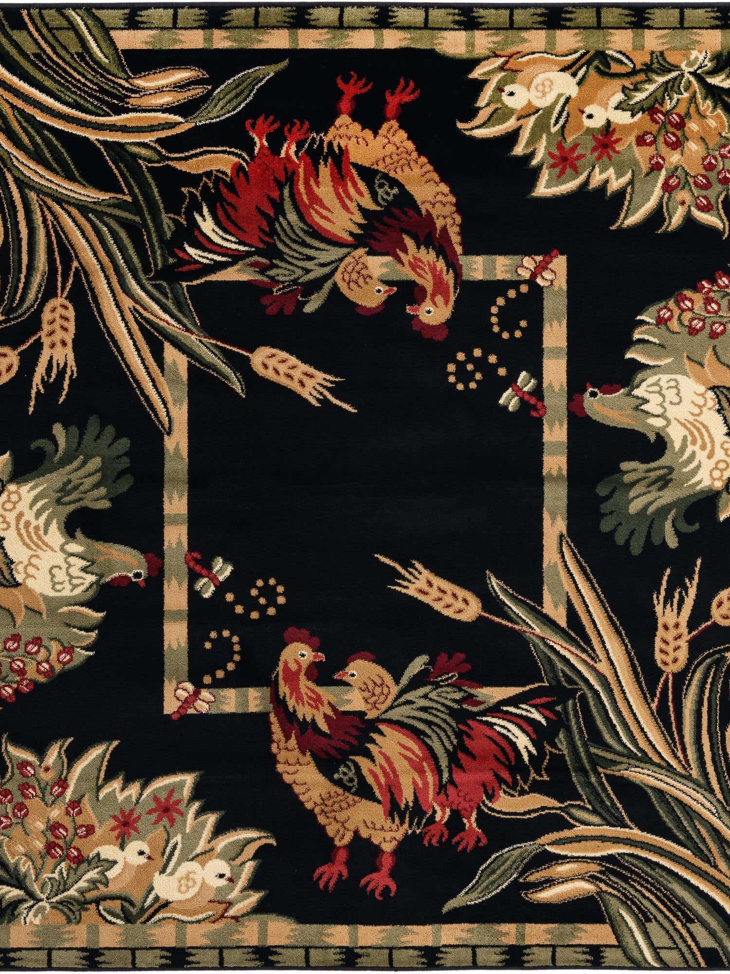 Black 7' 1 x 7' 1 Barnyard Square Area Rug 100% Polypropylene With Cotton Backing Traditional Cottage Rustic Classical Carpet for Living Office Bedroom Dining Room Easy to Clean Long Lasting & Durable Decor