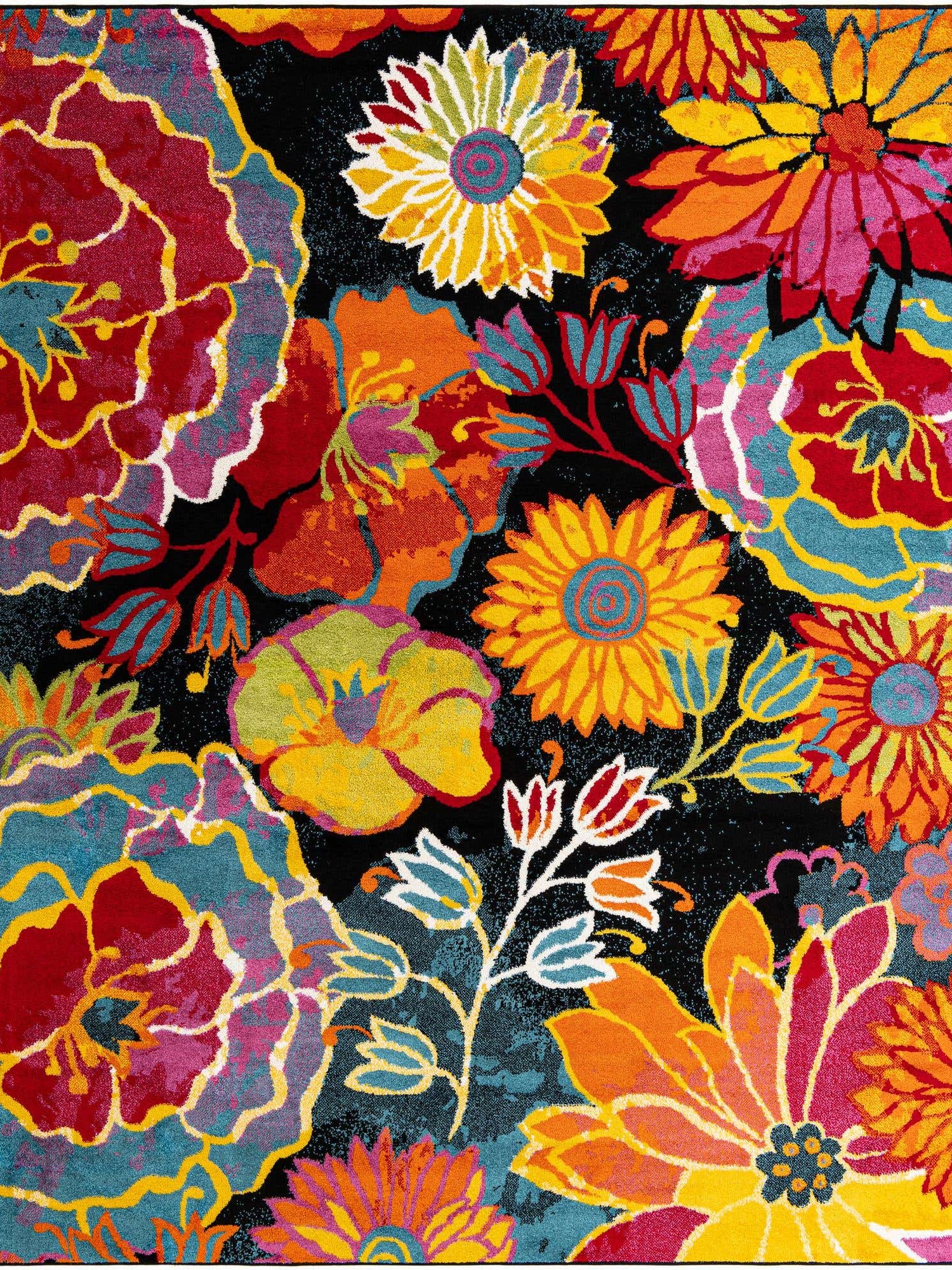 Black 8' x 10' Lyon Rectangle Area Rug Vivid Colorful Abstr...