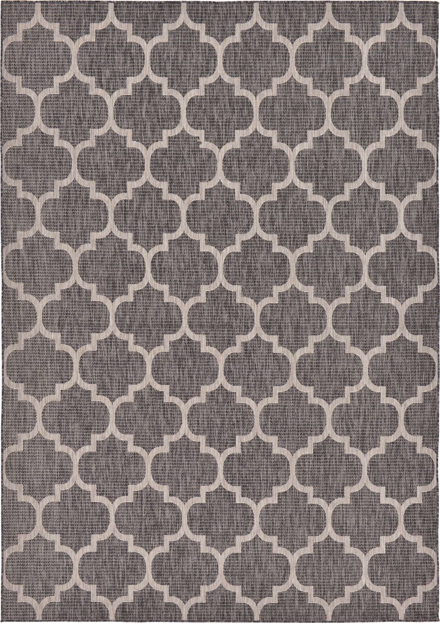 Black 7' 10 x 11' Outdoor Trellis Rectangle Area Rug Weather Resistant for Patio, Deck, Terrace, Balcony, Porch
