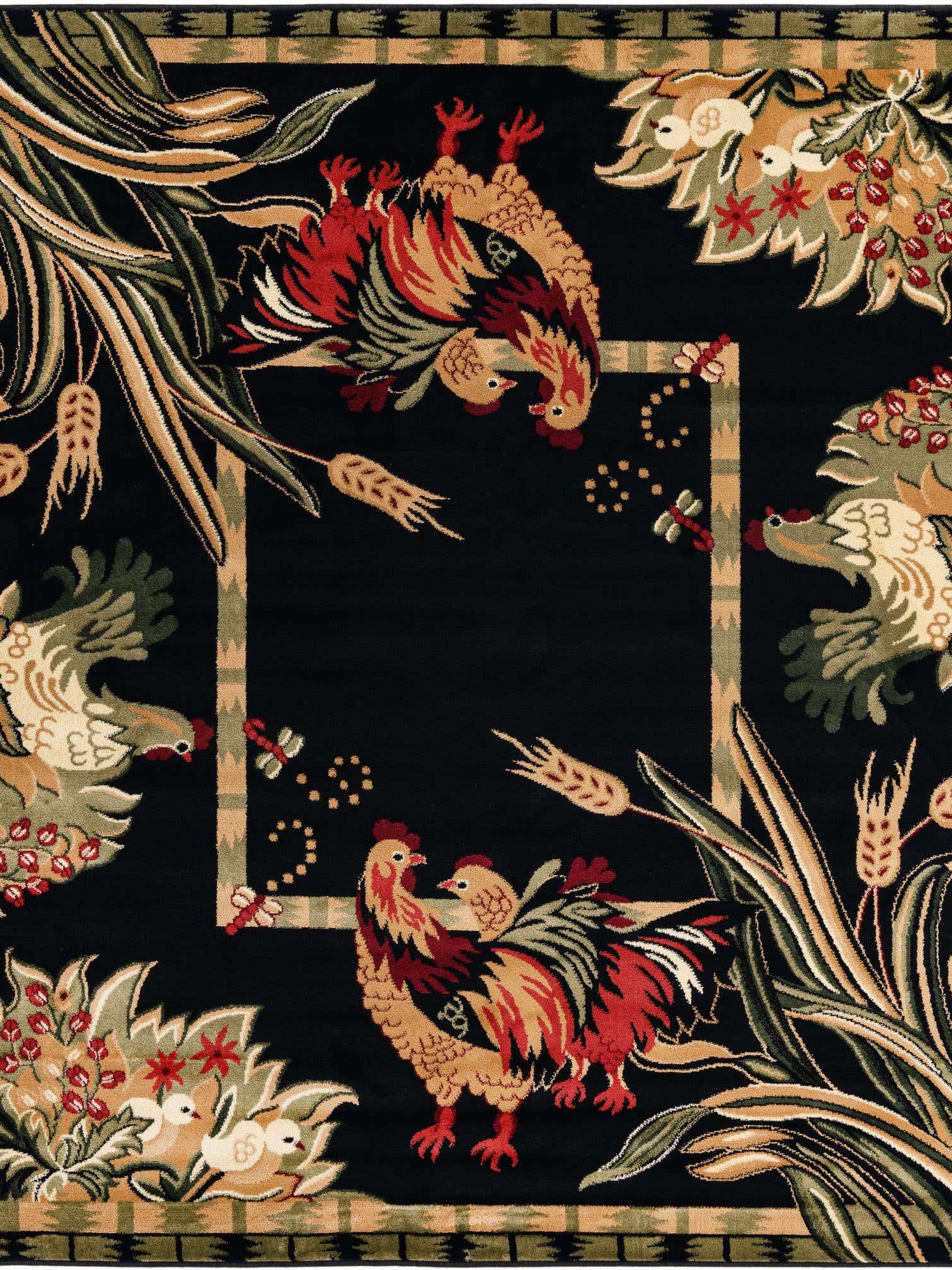 Black 7' 10 x 7' 10 Barnyard Square Area Rug 100% Polypropylene With Cotton Backing Traditional Cottage Rustic Classical Carpet for Living Office Bedroom Dining Room Easy to Clean Long Lasting & Durable Decor