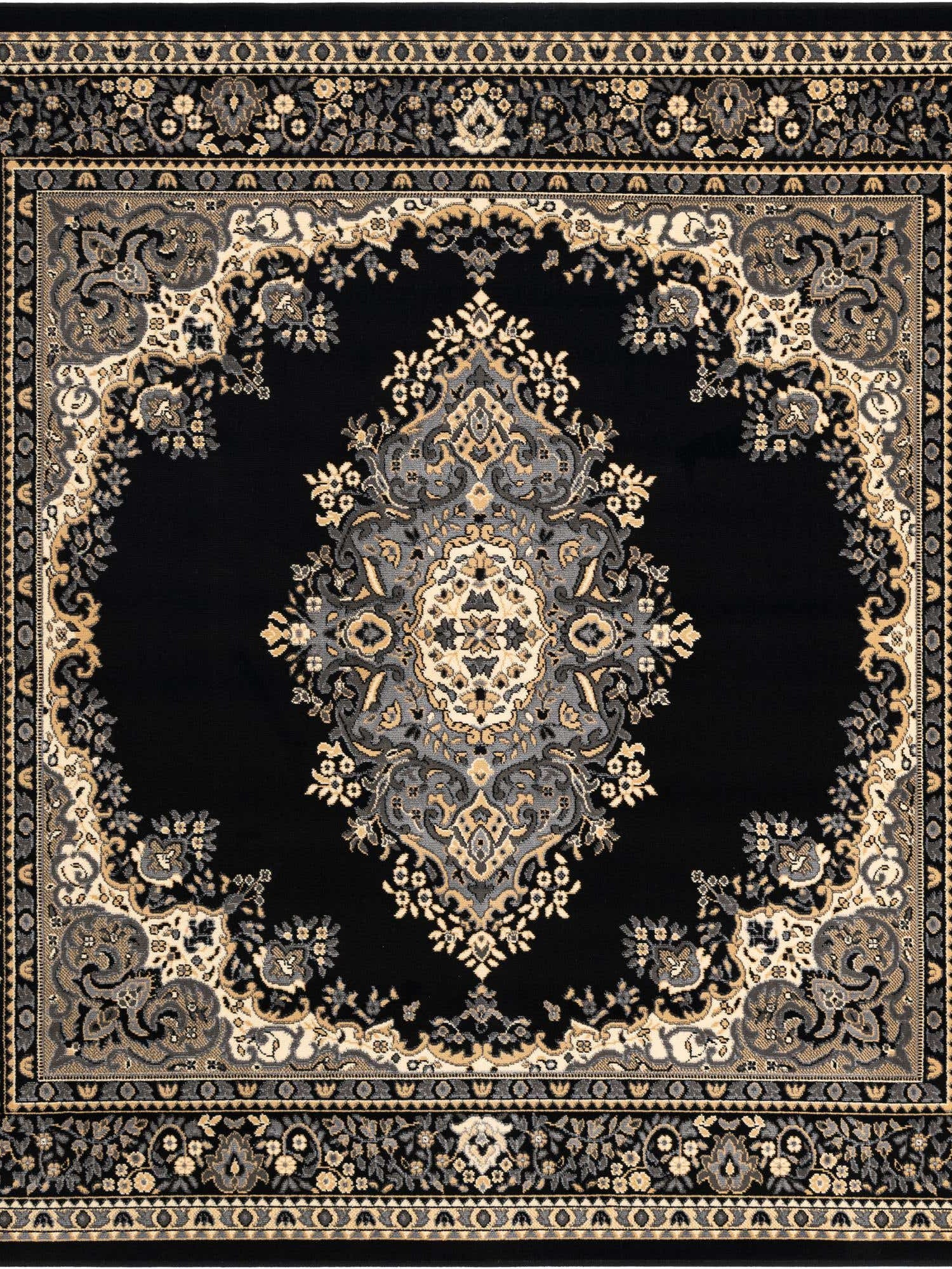 Black 7' 10 x 7' 10 Reza Square Area Rug 100% Polypropylene Easy Clean Traditional Motif Classic Carpet for Home Interiors
