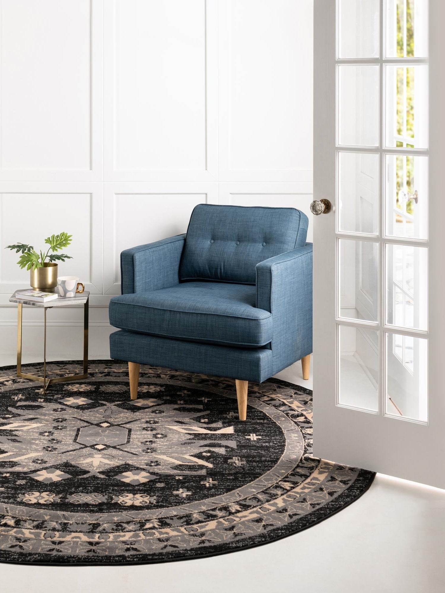 Washable Blue 5' x 5' Timeless Round Area Rug Easy to Clean Stain Resistant & Durable