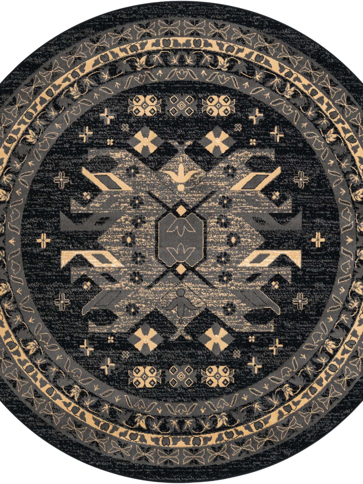 Black 7' 10 x 7' 10 Taftan Round Area Rug