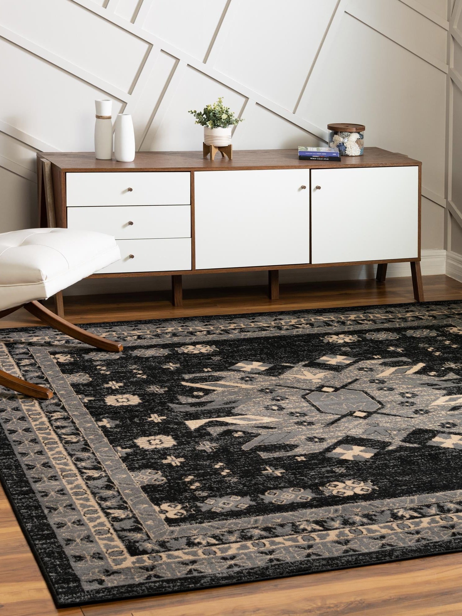 - Timeless Design: Crafted with a traditional Persian-inspired design, this rug showcases intricate patterns that will elevate your decor. The classic black color serves as a stunning backdrop, allowing it to blend seamlessly with various interior styles. This rug not only enhances your space but also tells a story of elegance and sophistication.