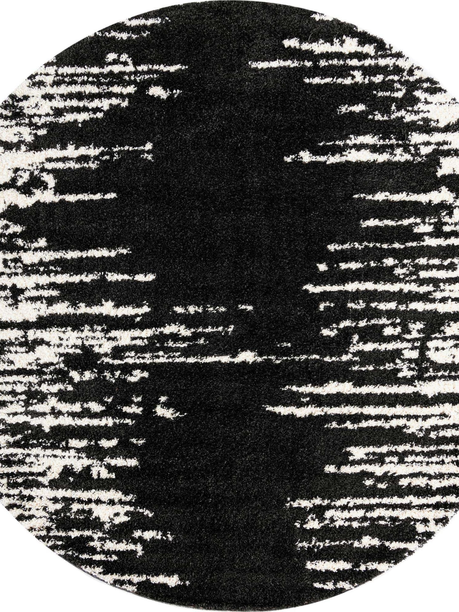 Black and White 10' x 10' Serenity Shag Round Area Rug Thic...