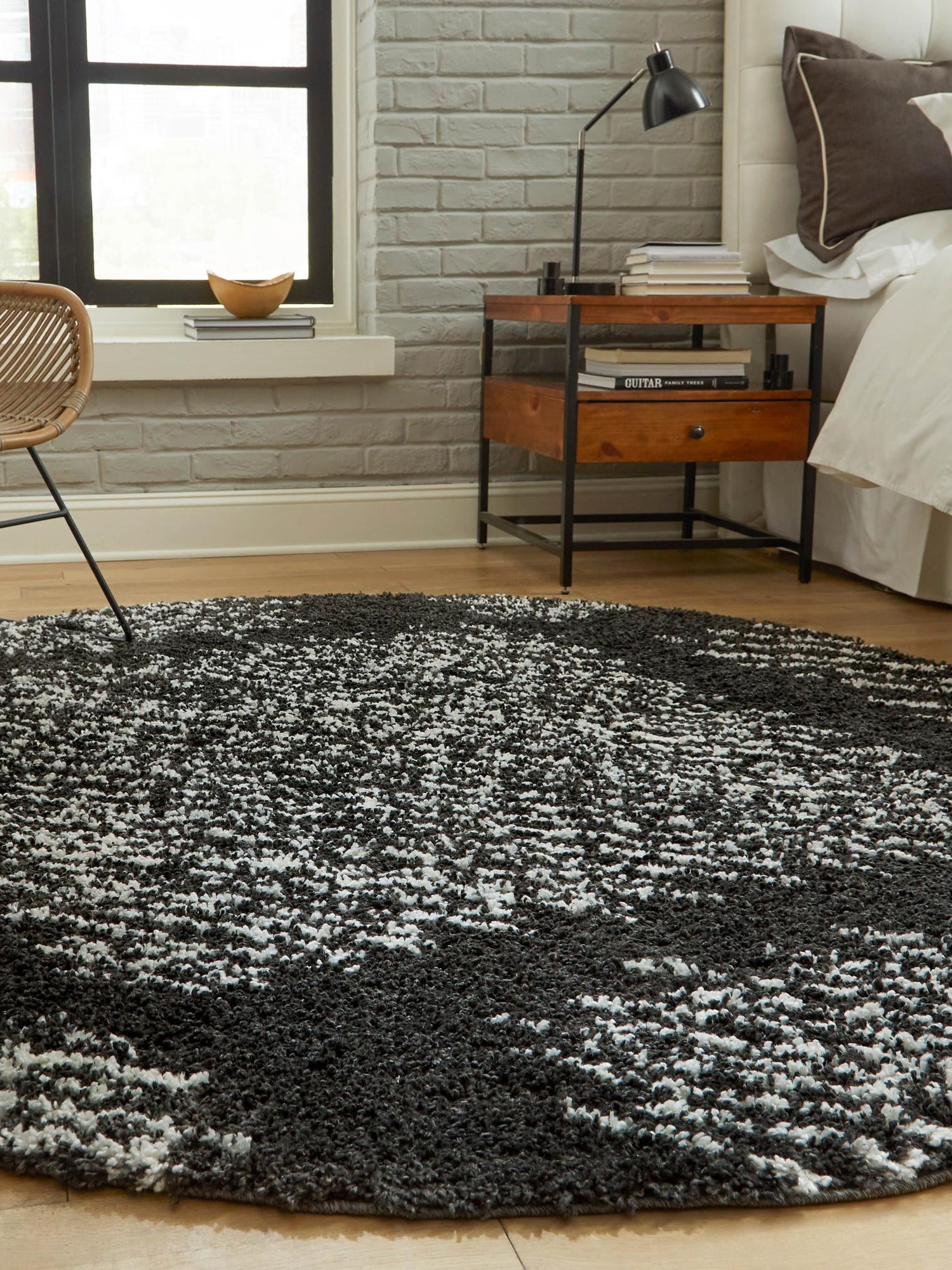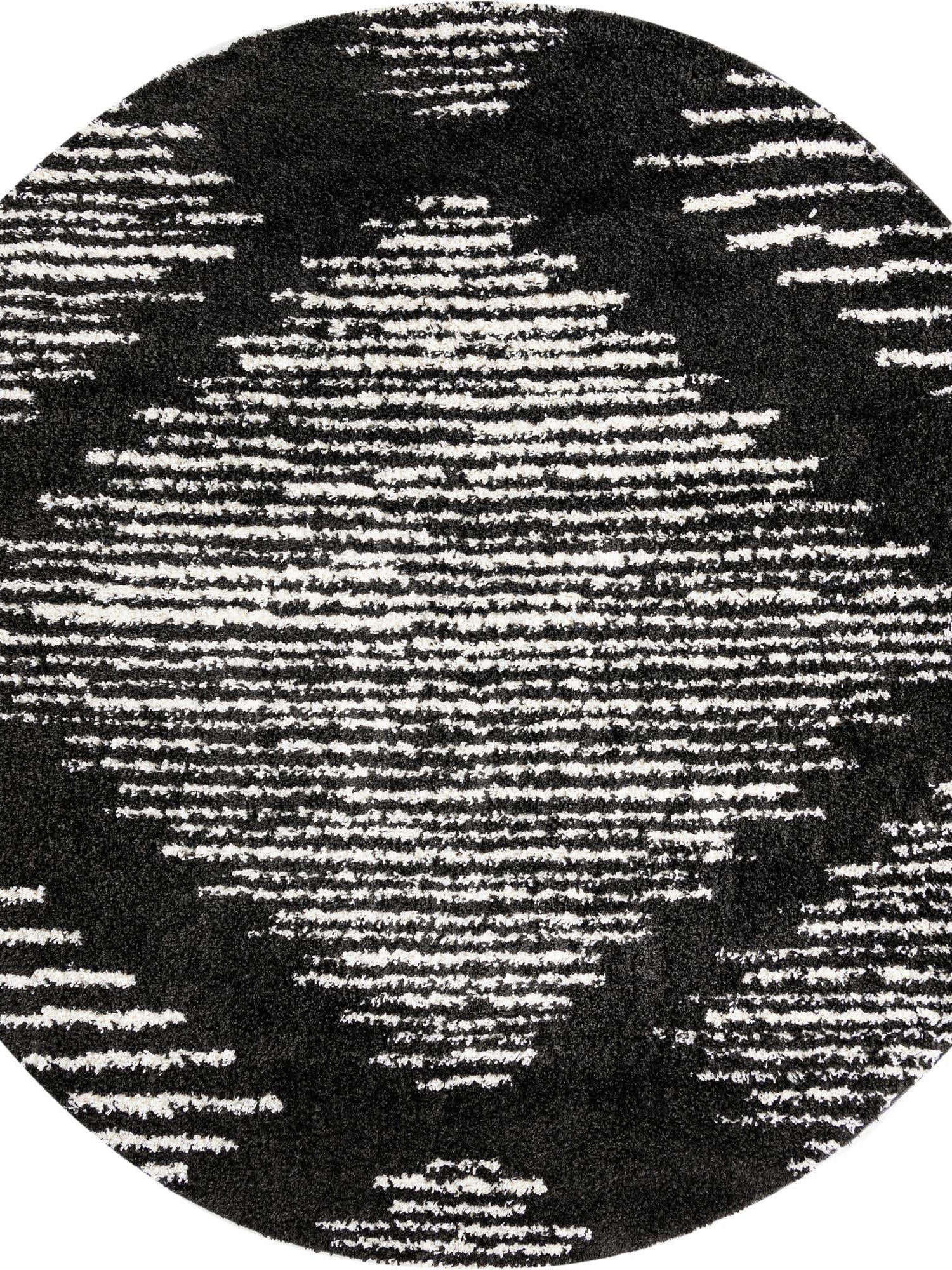 Black and White 10' x 10' Serenity Shag Round Area Rug Thic...