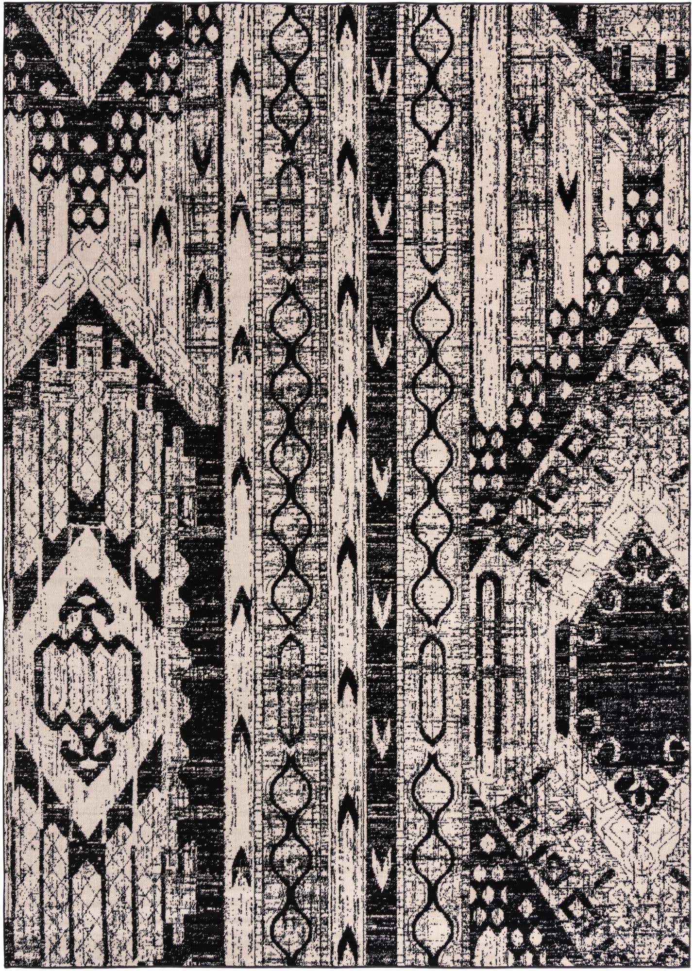 Black and White 10' x 14' 1 Portland Rectangle Area Rug 85% Polypropylene & 15% Polyester Vintage Distressed Traditional Carpet for Home Decor