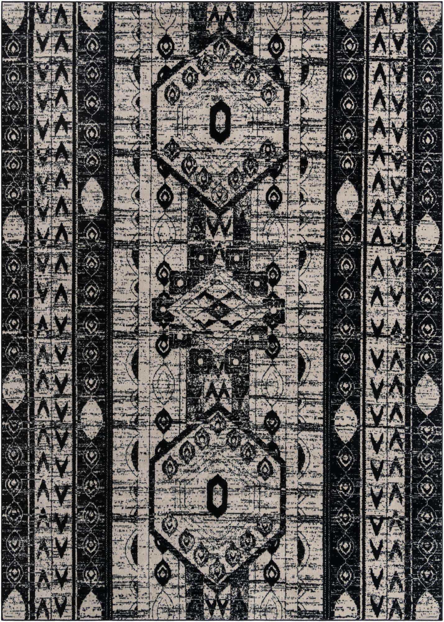 Black and White 10' x 14' 1 Portland Rectangle Area Rug 85% Polypropylene & 15% Polyester Vintage Distressed Traditional Carpet for Home Decor