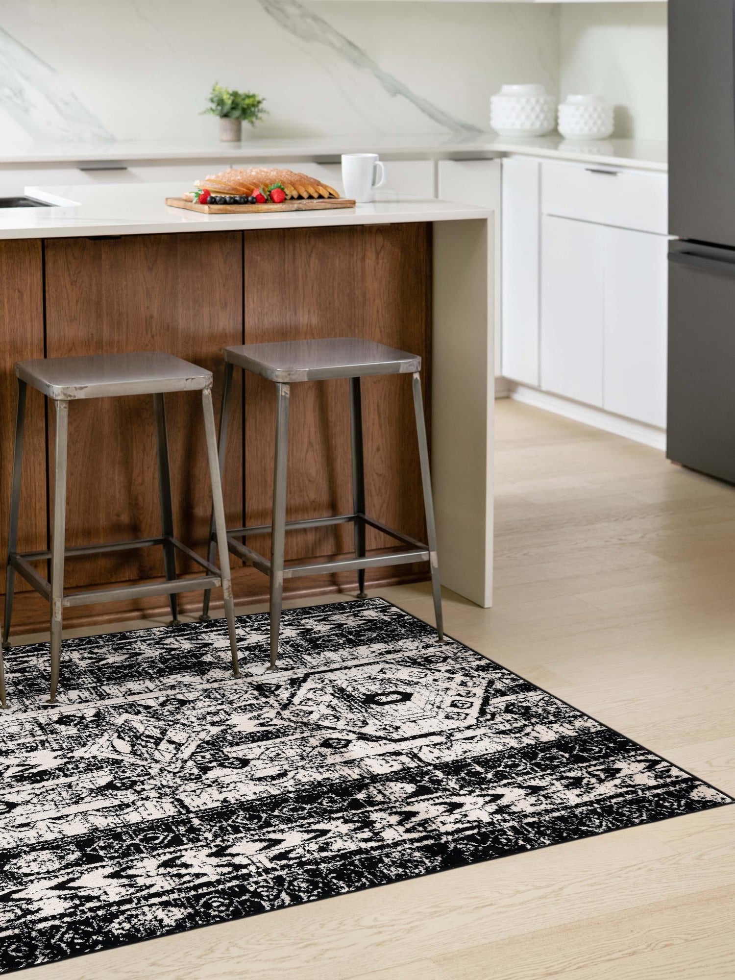 - Stunning Color Palette: The classic black and white color scheme offers a timeless aesthetic that complements a variety of interior styles. This rug can serve as a striking contrast against colorful decor or as a subtle addition to a monochromatic theme. Its versatile colors ensure it will effortlessly blend into your home design.