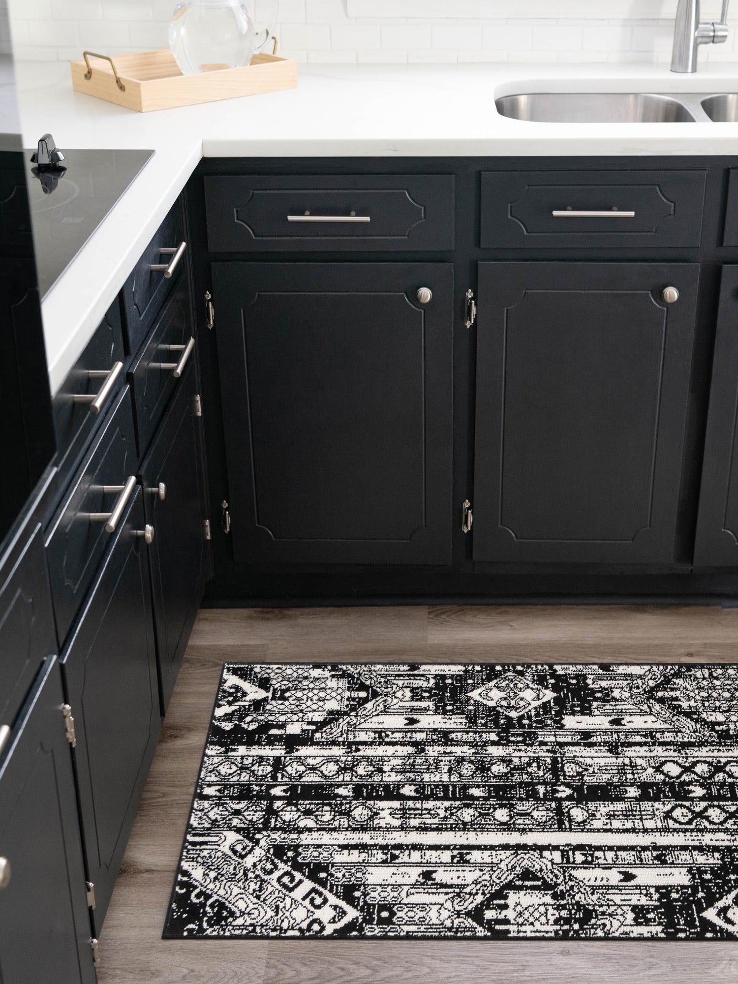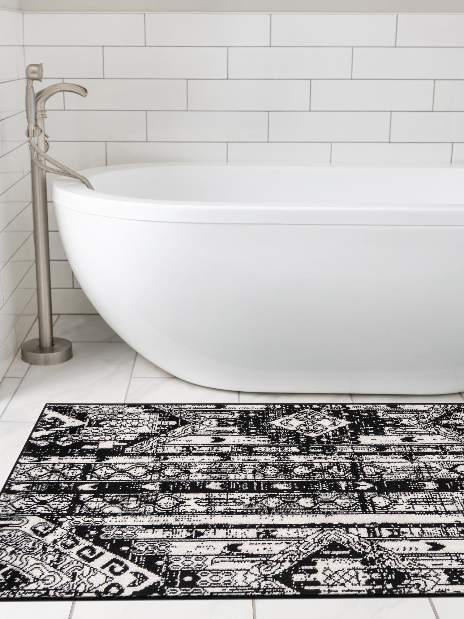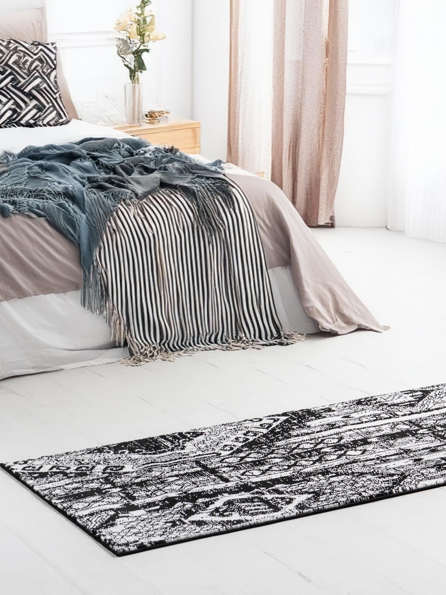 - Striking Black and White Color Scheme: The contrasting black and white tones of this rug offer a timeless elegance that complements any interior design. This classic color palette not only enhances your space but also makes it easy to combine with various color schemes and furniture styles. Transform your room into a chic and inviting environment with this versatile piece.