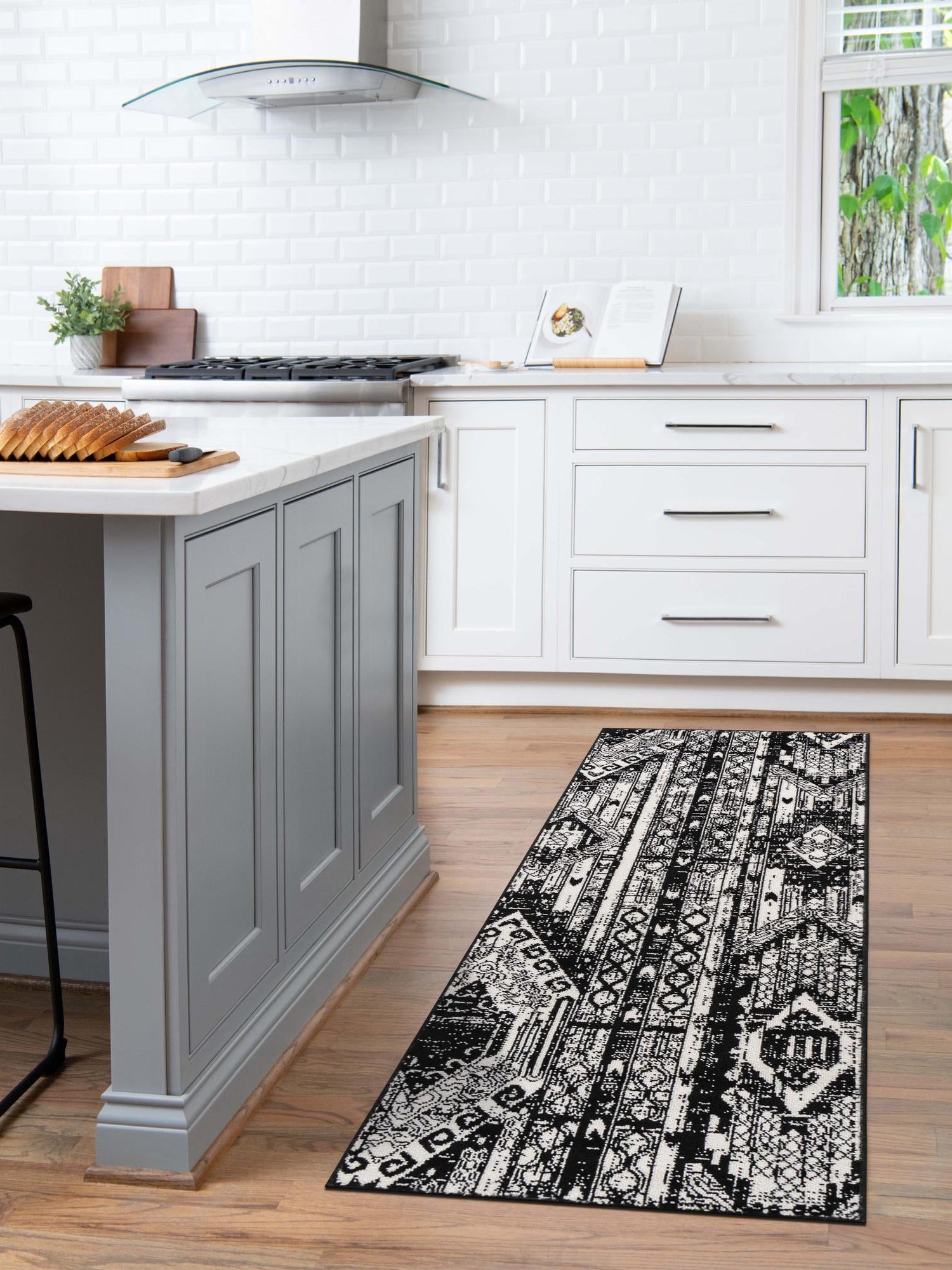 Black and White 2' 2 x 12' Portland Runner Area Rug 85% Pol...